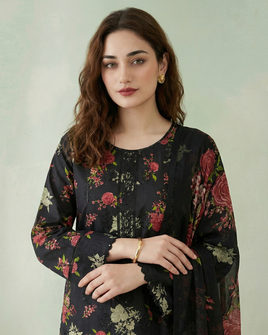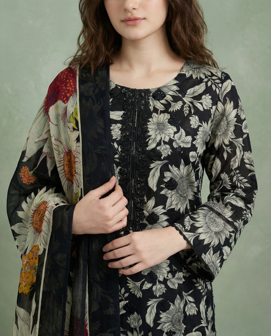 K&R Lawn - Chiffon Dupatta 527 Black