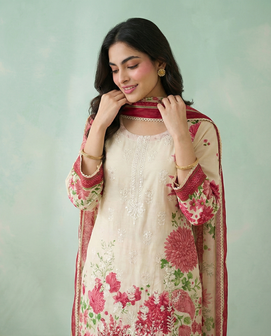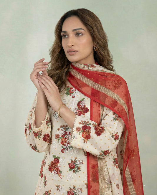 K&R Lawn - Chiffon Dupatta 533 Cream