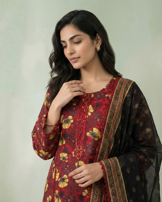 Amazing ready-to-wear quality from Muslim Boutique Fully finished dupatta included; it’s completely ready to wear right away!