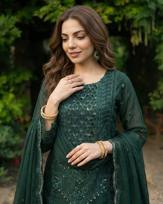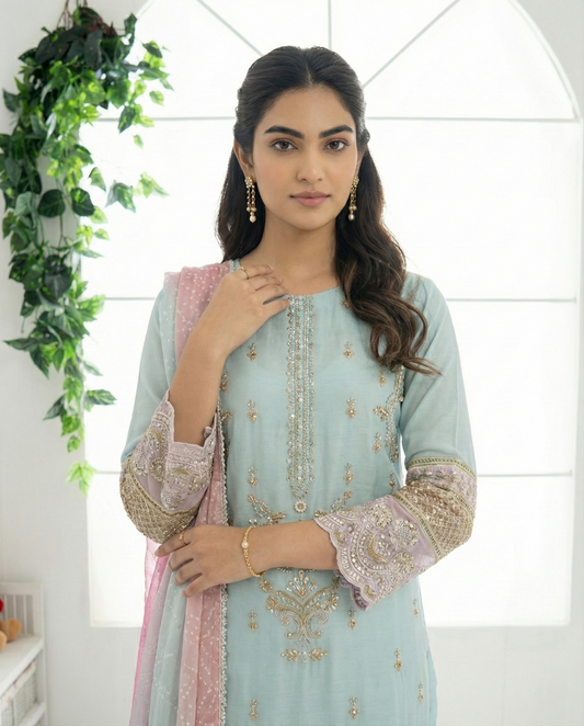 Amazing ready-to-wear quality from Muslim Boutique Fully finished dupatta included; it’s completely ready to wear right away!
