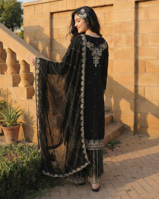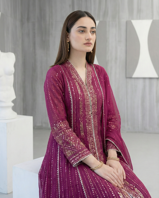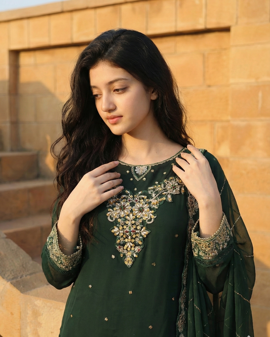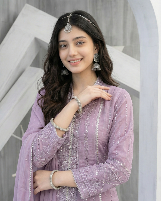 Amazing ready-to-wear quality from Muslim Boutique Fully finished dupatta included; it’s completely ready to wear right away!