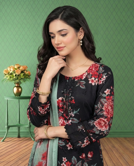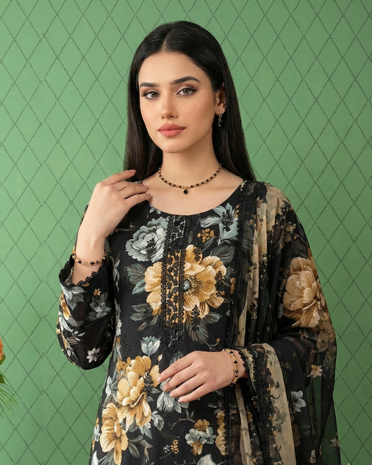 K&R Lawn - Chiffon Dupatta 627 Black