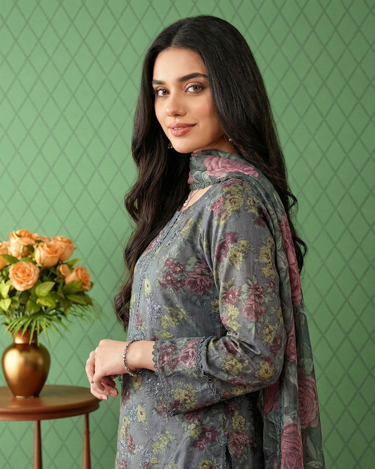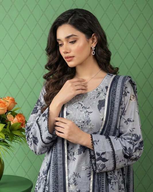 K&R Lawn - Lawn Dupatta 636 Grey