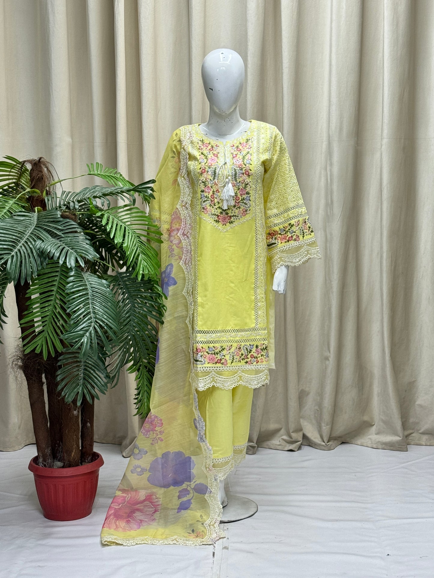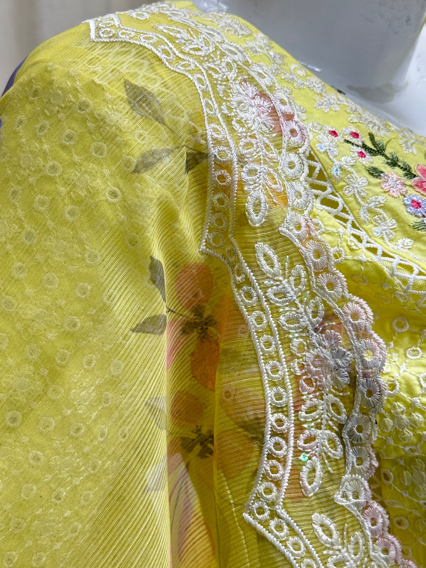 Introducing Karma 1330 By SH - the perfect addition to your wardrobe! This 3PC Ready To Wear set from the SH Brand Collection includes a stylish cutline shirt, comfortable cotton trousers, and a beautiful Khaddi Net Digital Printed dupatta. Perfect for any occasion, the cotton fabric ensures all-day comfort while the dupatta adds an elegant touch. Upgrade your wardrobe with Karma 1330.