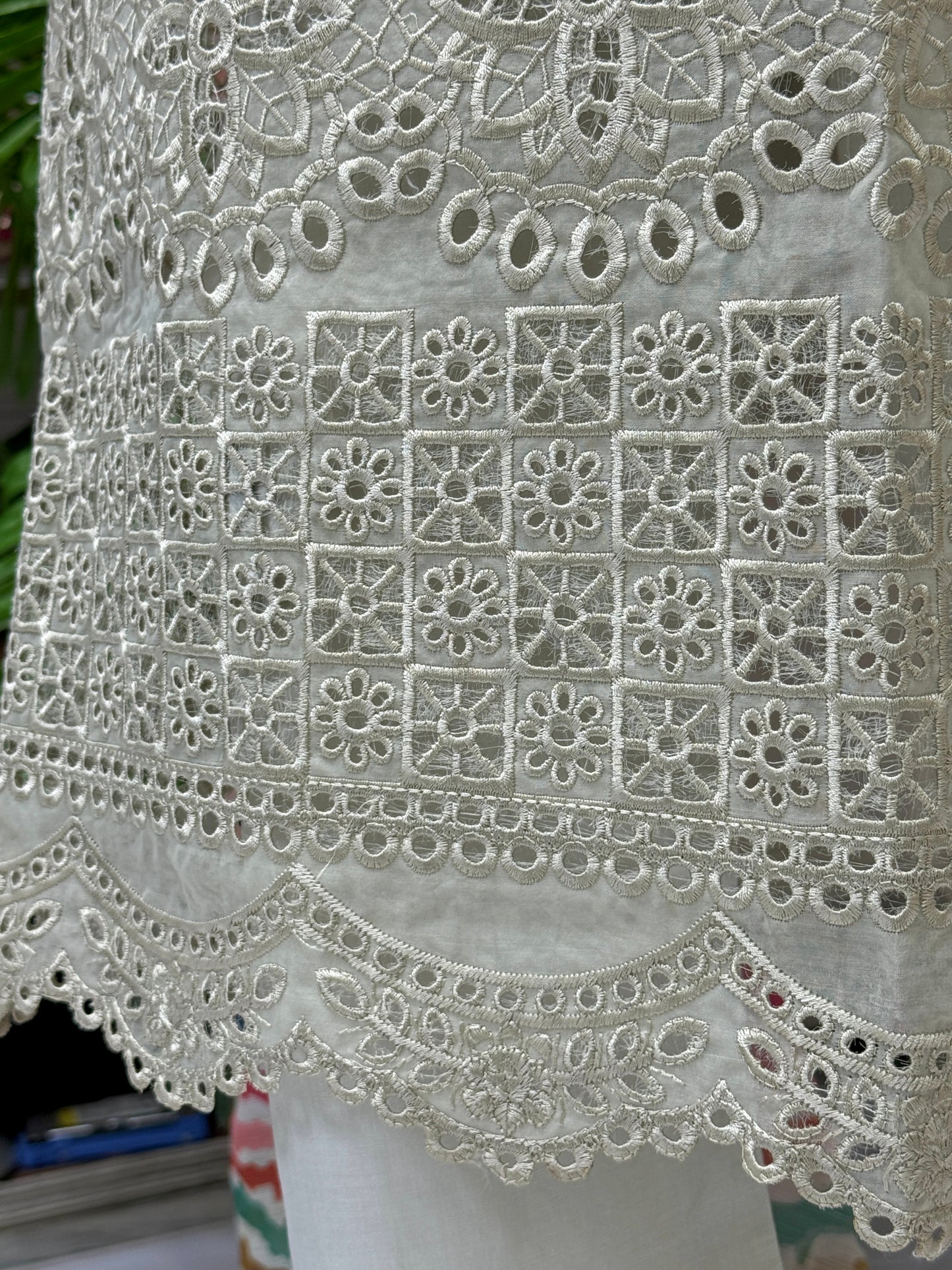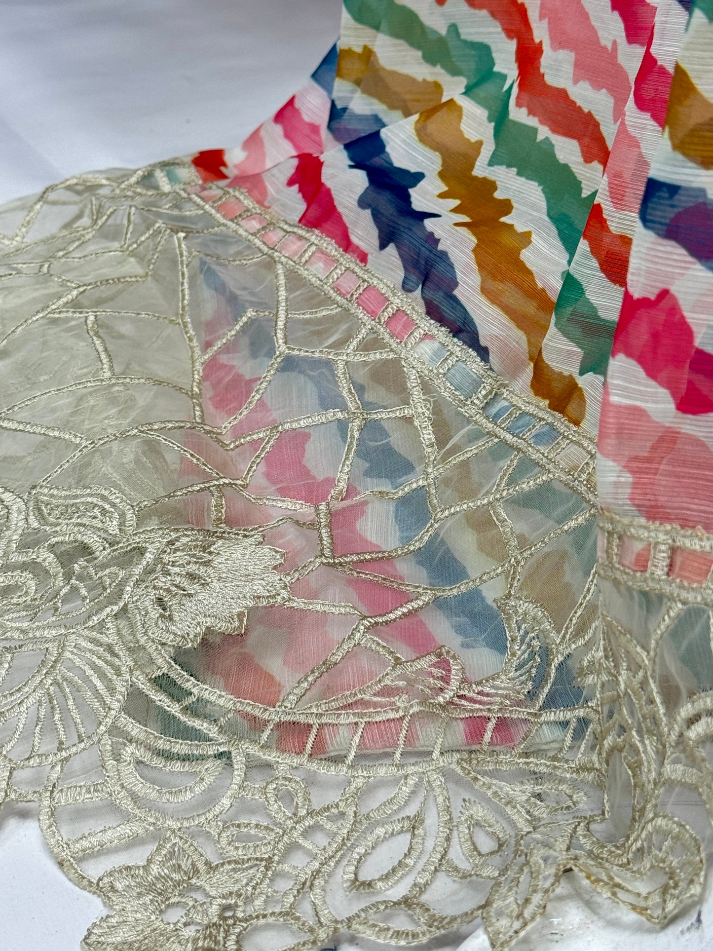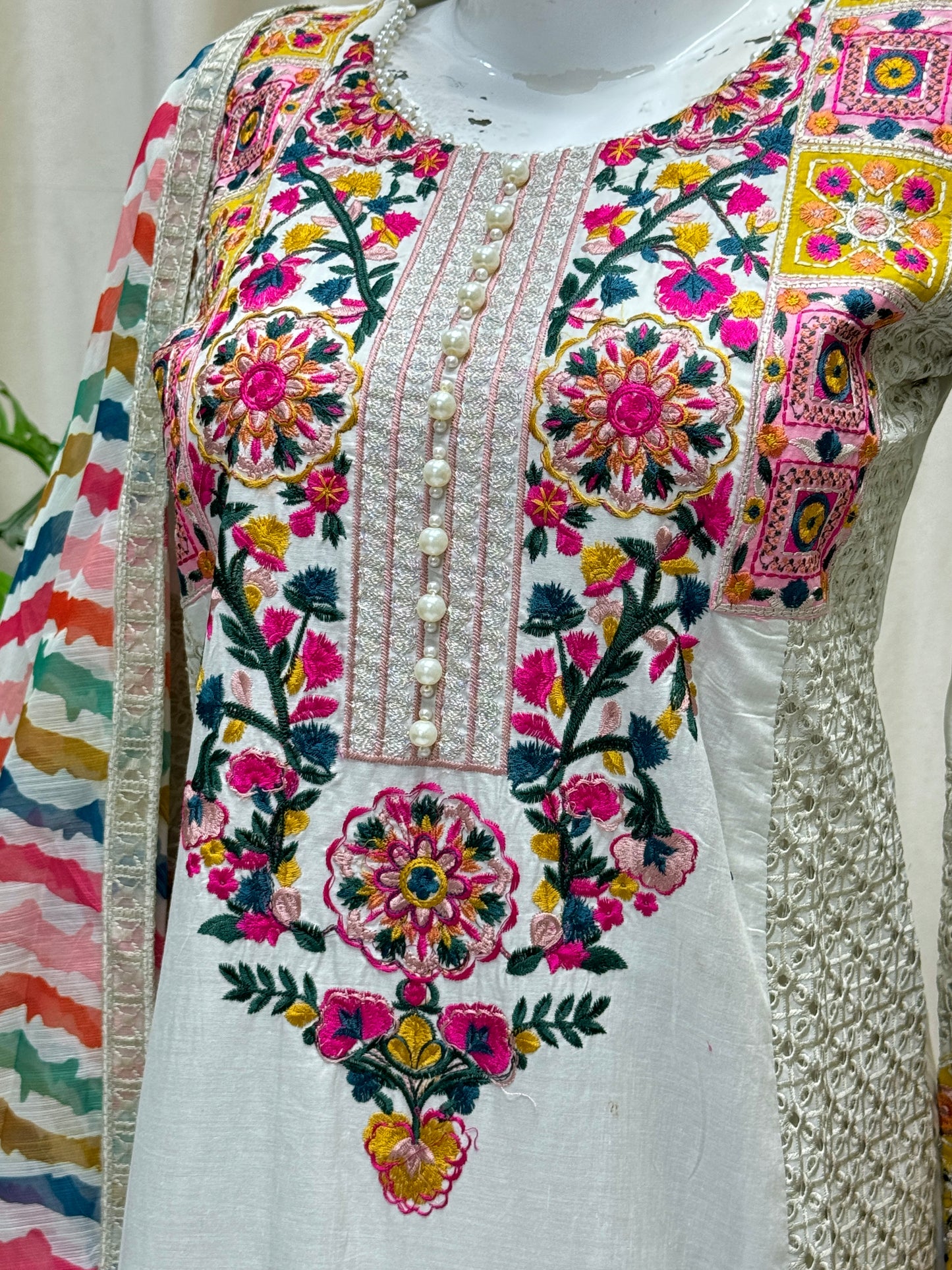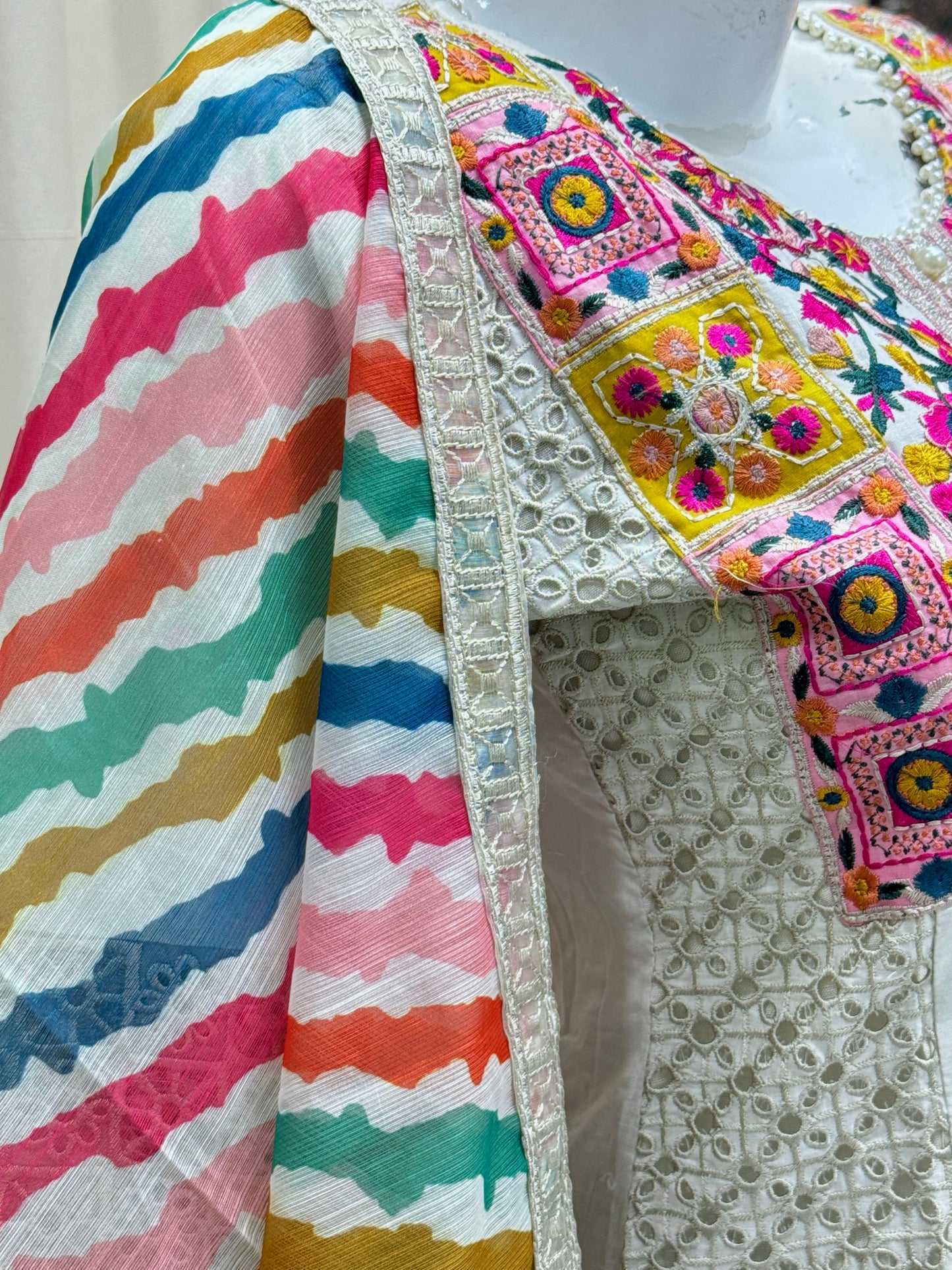 Get ready in style with the 1332 By SH Off White! This 3-piece ready-to-wear set includes a comfortable cotton shirt, matching trousers, and a beautiful Khaadi net digital printed dupatta. Perfect for any occasion, this set will elevate your fashion game effortlessly.