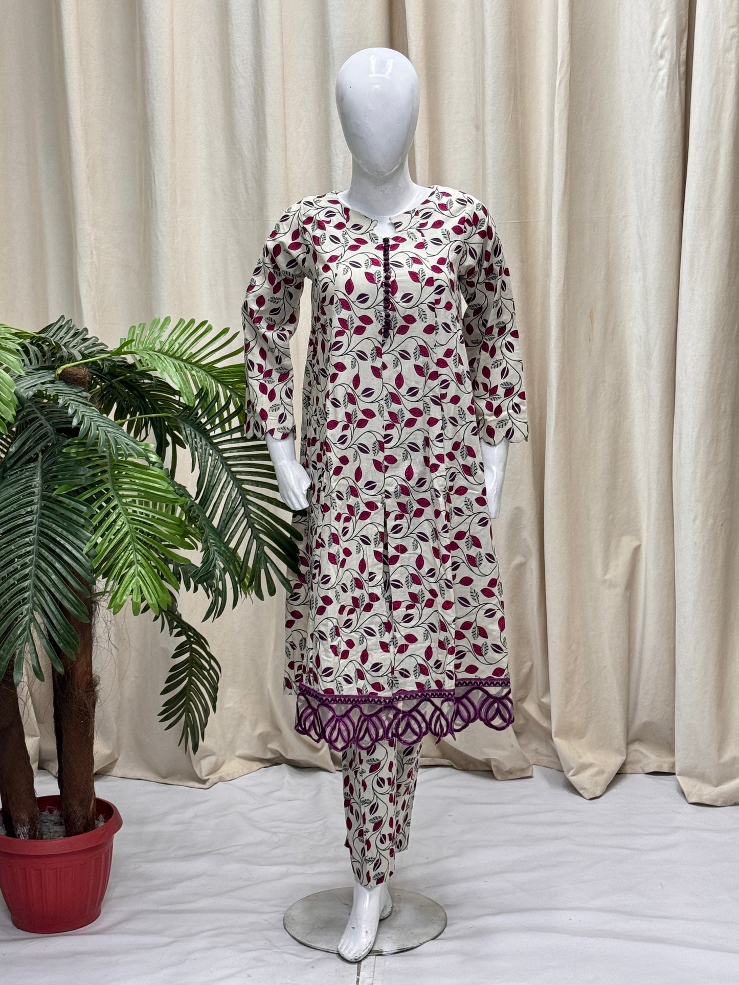 This 2-piece set includes a ready-to-wear shirt and trouser. Made with khaddar fabric, it offers easy wearability and a comfortable fit. Perfect for daily wear or special occasions, this versatile set is a must-have for your wardrobe.