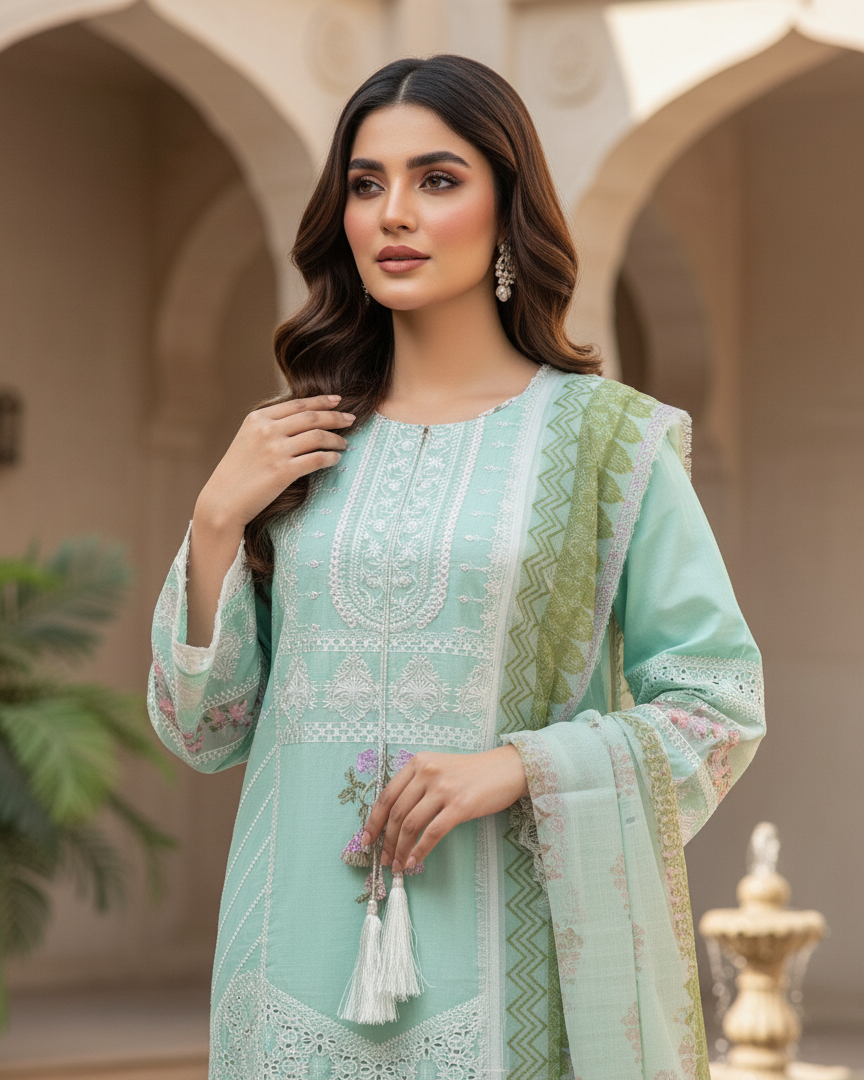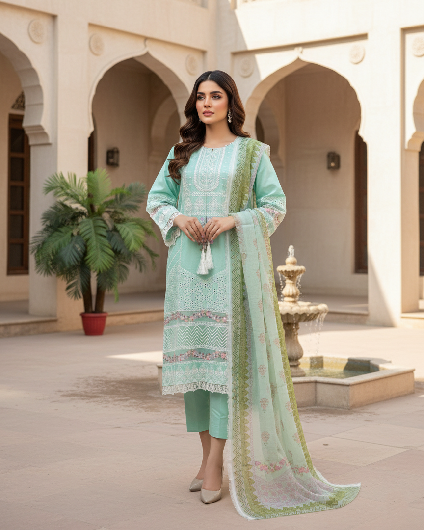 Get ready to make a statement with our 3PC 1353 By W DOT 296! This stylish set comes with a comfortable cotton shirt, dupatta, and trouser, all featuring intricate embroidery. Perfect for any occasion, this ready-to-wear outfit will have you looking and feeling confident. Upgrade your wardrobe with this must-have ensemble.