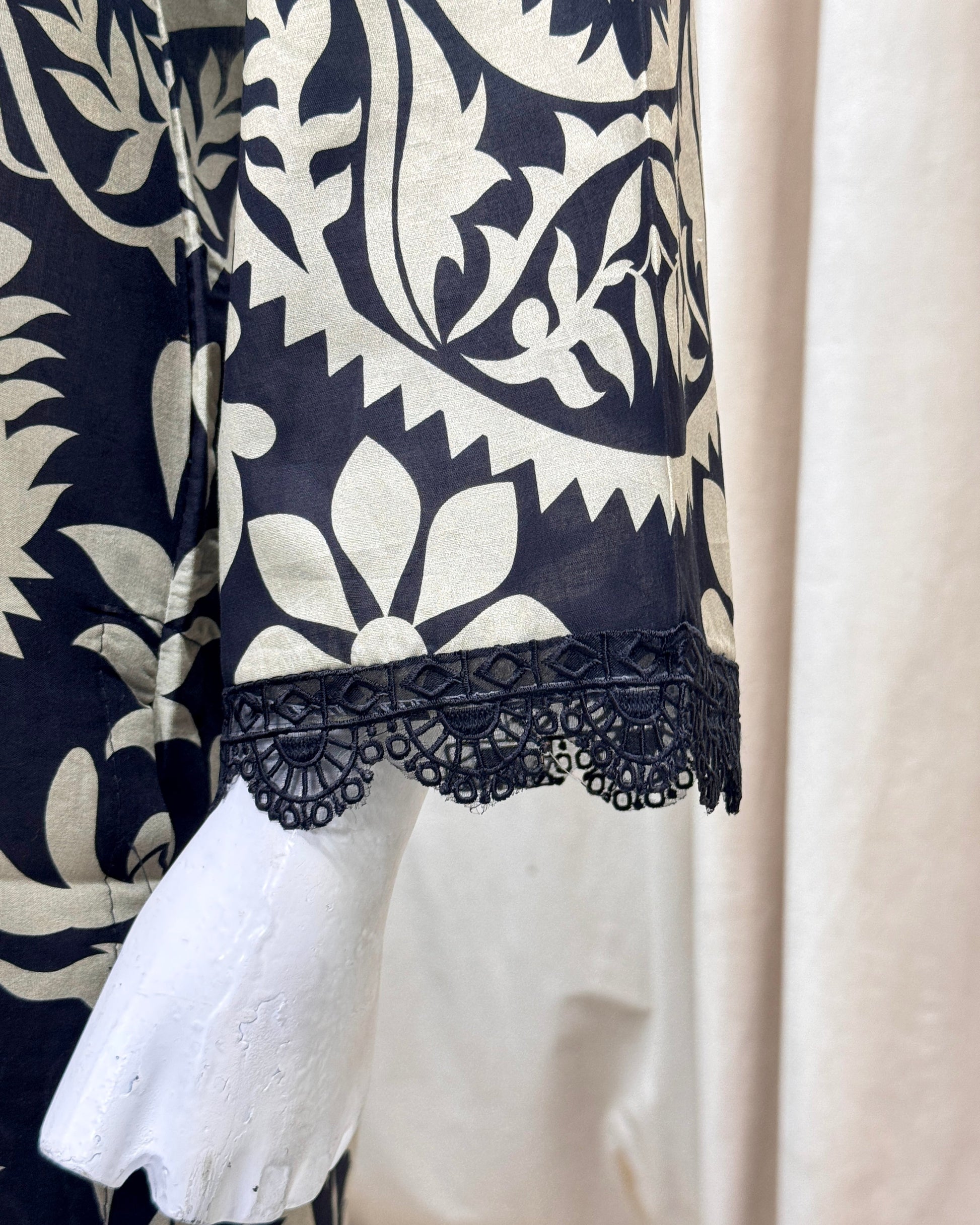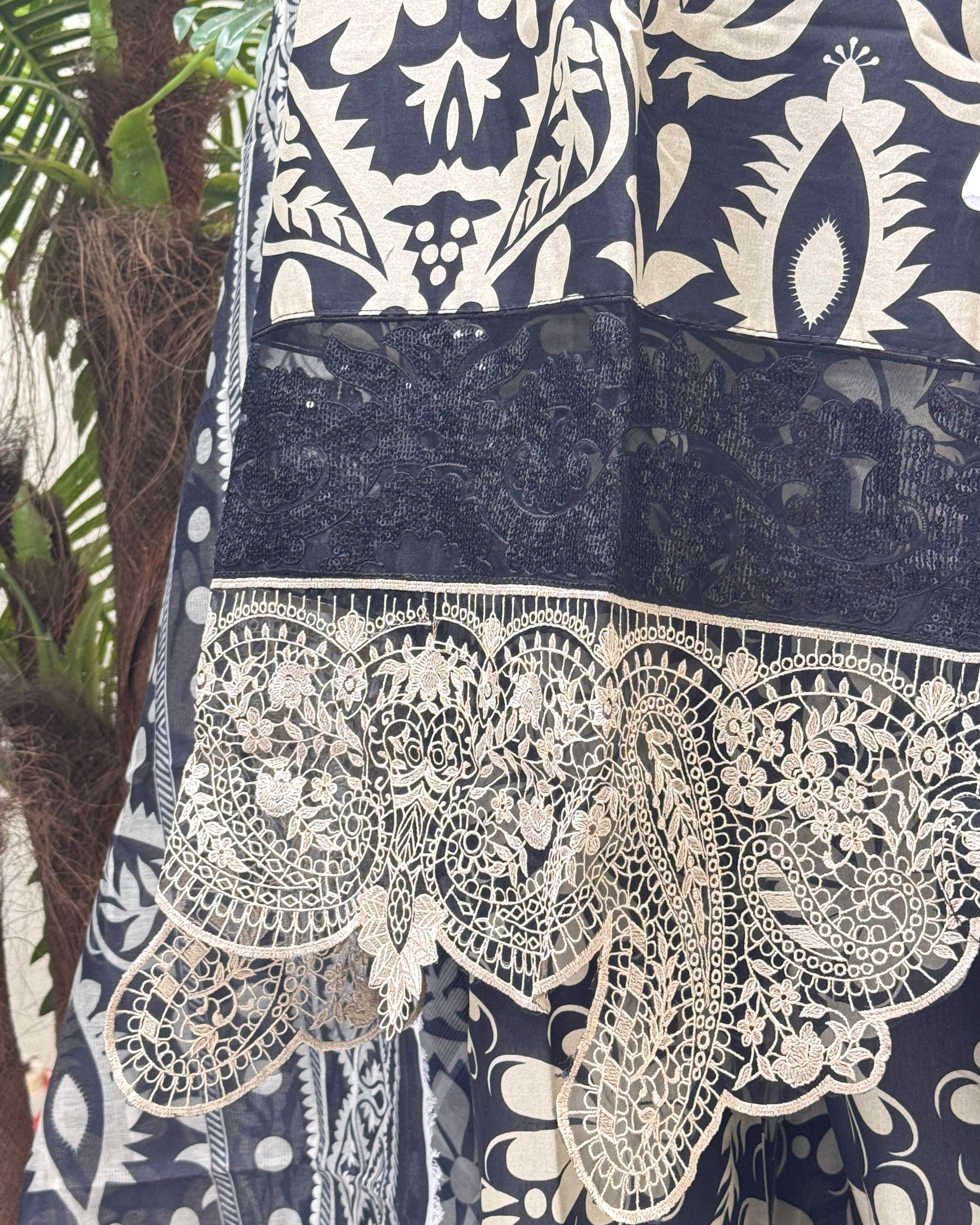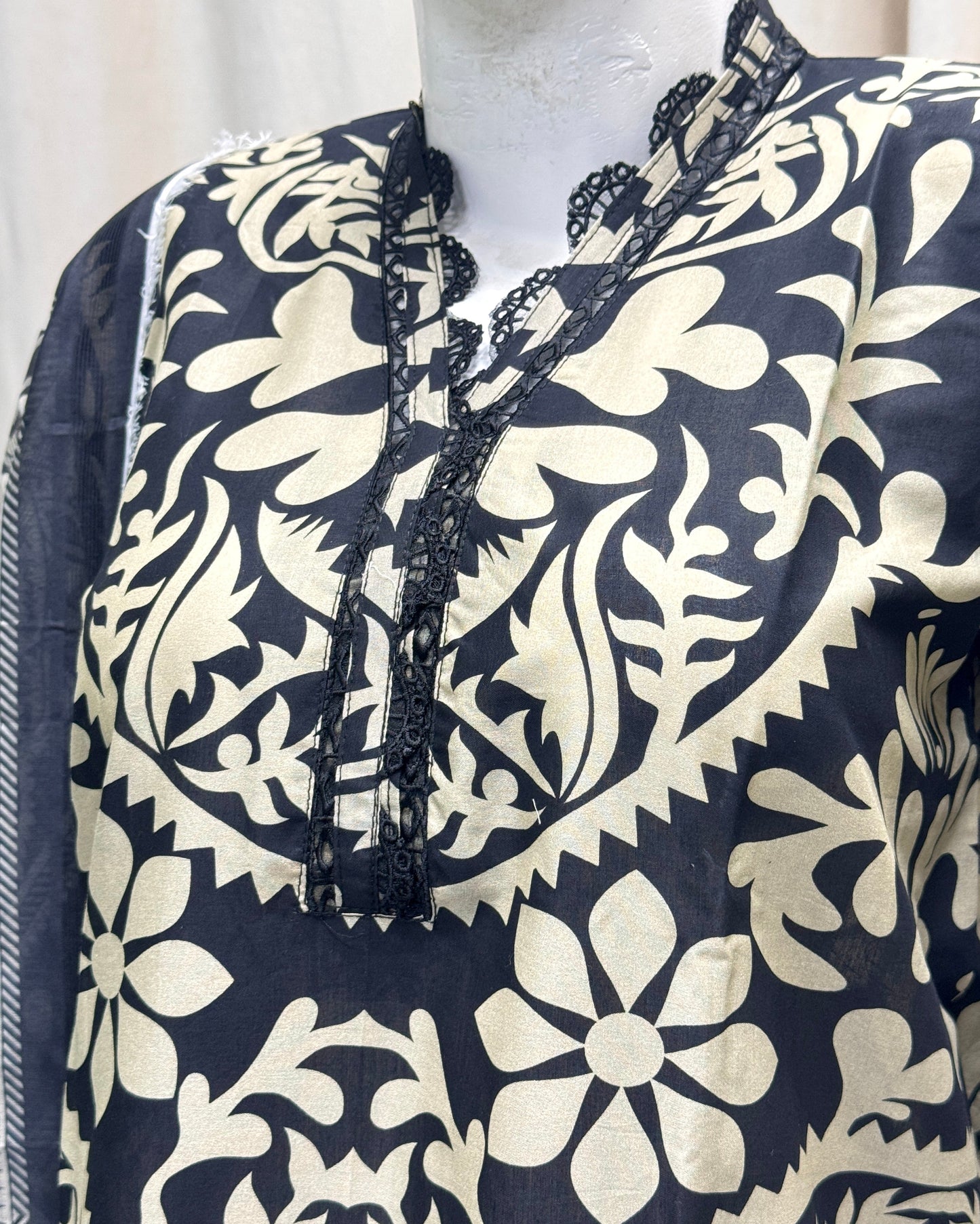 Discover the perfect look. Its intriguing details make it a must-have for any wardrobe. Designed for comfort and style, you'll feel confident and fashionable every time you wear it. Upgrade your look today with this outfit. This 3PC set blends elegance and ease — featuring a breezy Doria cotton shirt, flared cotton trousers, and a statement diamond-fabric dupatta for a graceful finish ideal for day or evening wear.