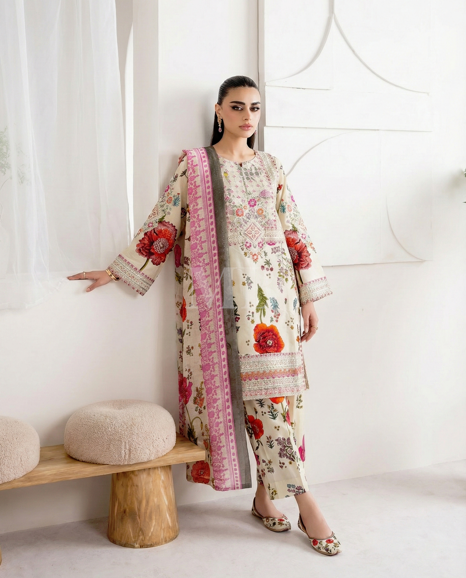 A fresh everyday essential designed with comfort and effortless charm in mind. Lightweight textures and a subtle statement dupatta make this ensemble perfect for warm days and graceful casual wear.
