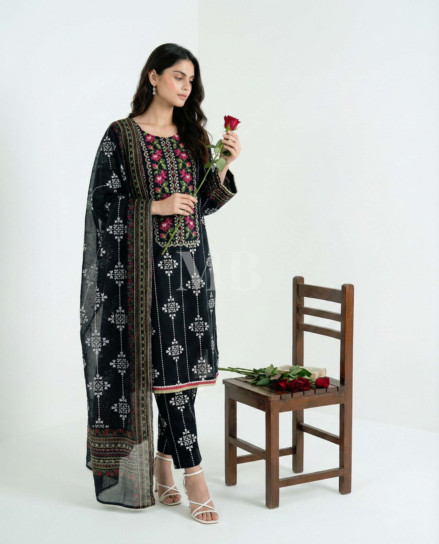 A fresh everyday essential designed with comfort and effortless charm in mind. Lightweight textures and a subtle statement dupatta make this ensemble perfect for warm days and graceful casual wear.