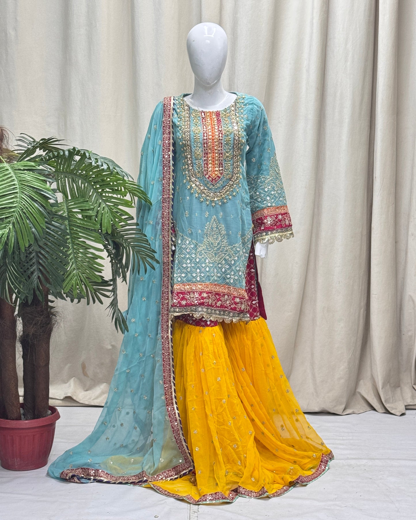 Cutline: Shirt + Sharara + Dupatta