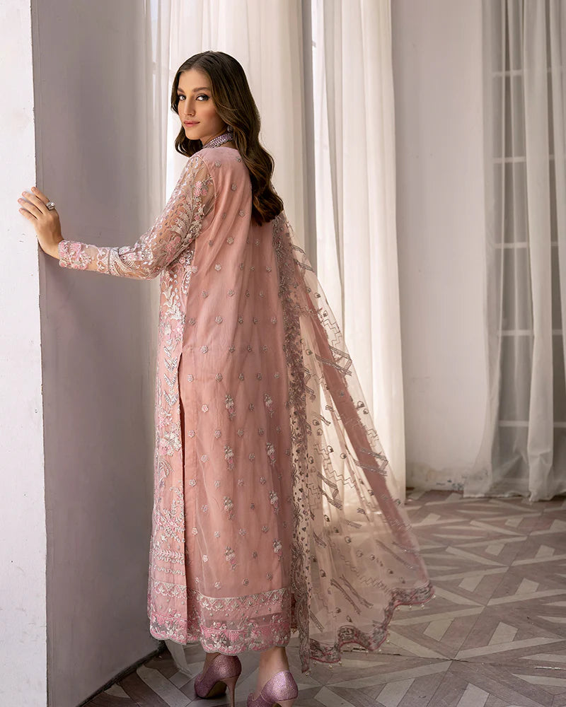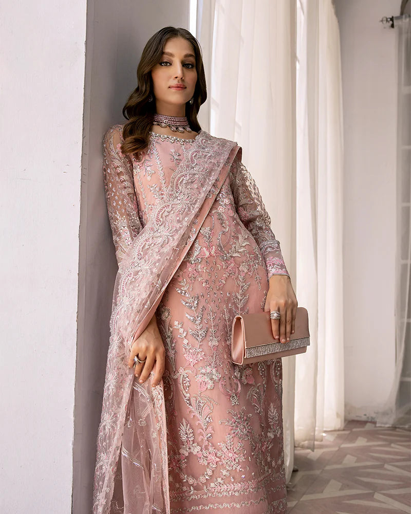 Discover the perfect look. Its intriguing details make it a must-have for any wardrobe. Designed for comfort and style, you'll feel confident and fashionable every time you wear it. Upgrade your look today with this outfit. This 3PC ready-to-wear ensemble features a net straight shirt with a beautifully handmade neckline, offering an elegant and refined silhouette. Paired with a net dupatta and grip trousers, this outfit is perfect for festive occasions with a touch of graceful charm. Shirt length ranges from 45 to 47 inches for a modest yet stylish finish.