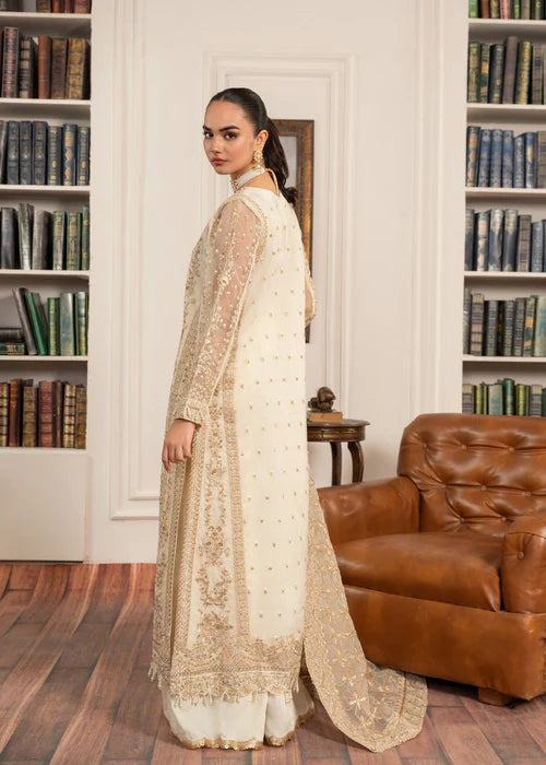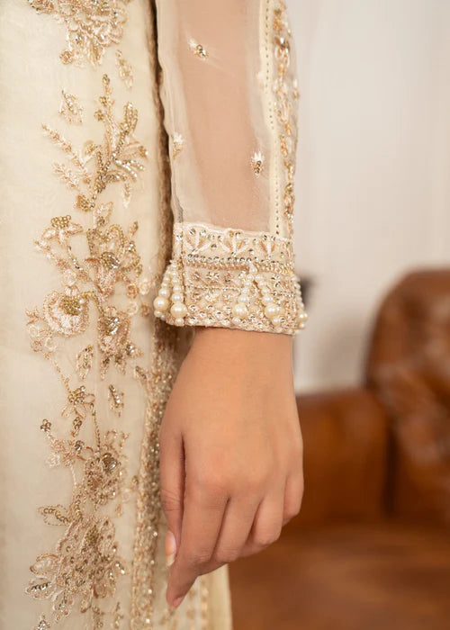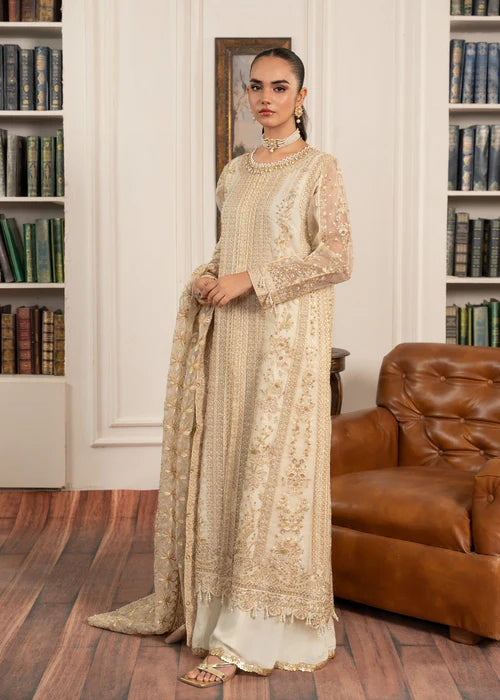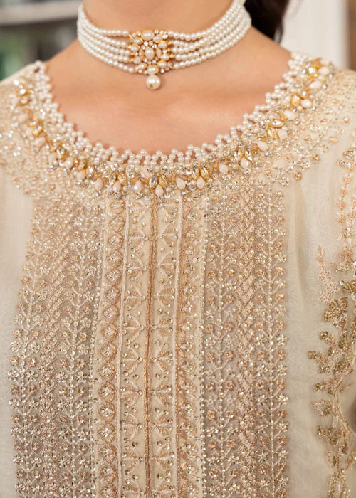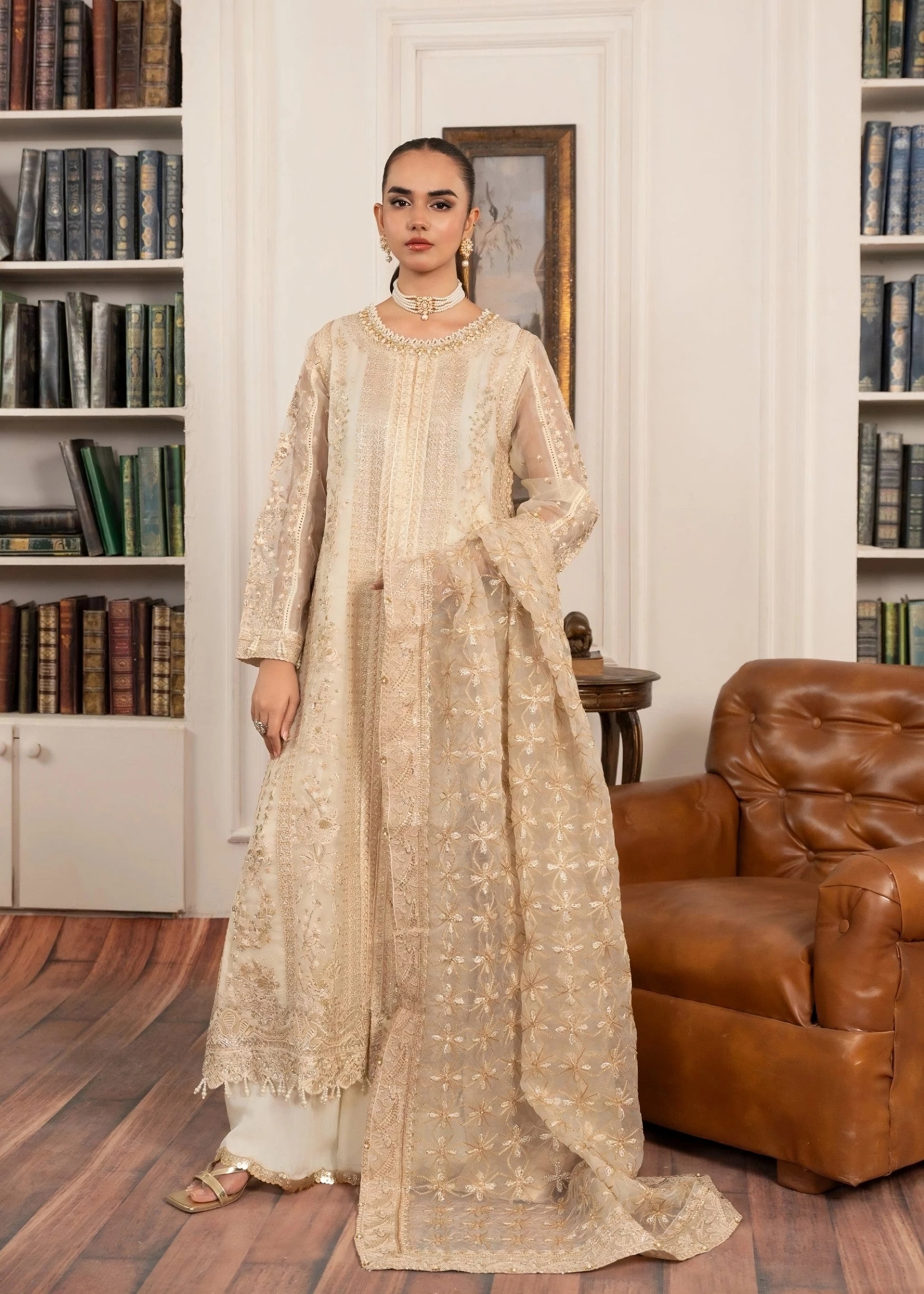 Expertly crafted, the AL3881 Off-White ensemble is perfect for any occasion. The 3PC Ready To Wear set includes a beautiful long shirt made of luxurious organza fabric, paired with a matching dupatta and stylish bottom style trousers. With its elegant cutline and high-quality materials, this outfit is a must-have for any fashion-forward individual.
