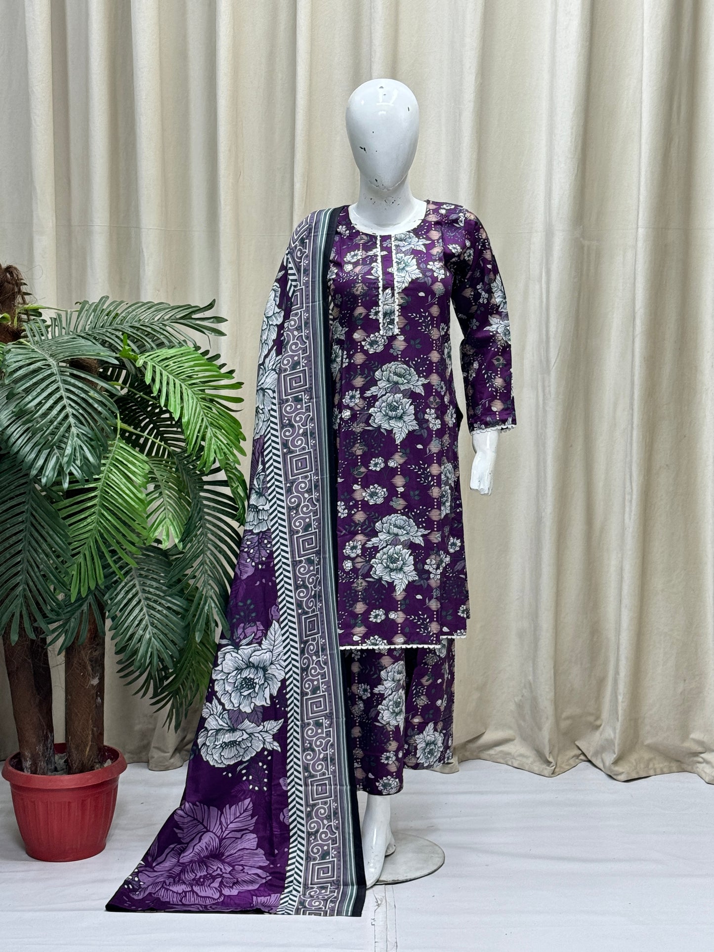 You can make your look with our Baroque all our printed viscose collection with viscose dupatta. This 3PC READY TO WEAR set includes a stylish shirt, flapper, and dupatta, all made from high-quality viscose material. With our versatile and elegant ensemble, you can feel comfortable and fashionable at the same time.