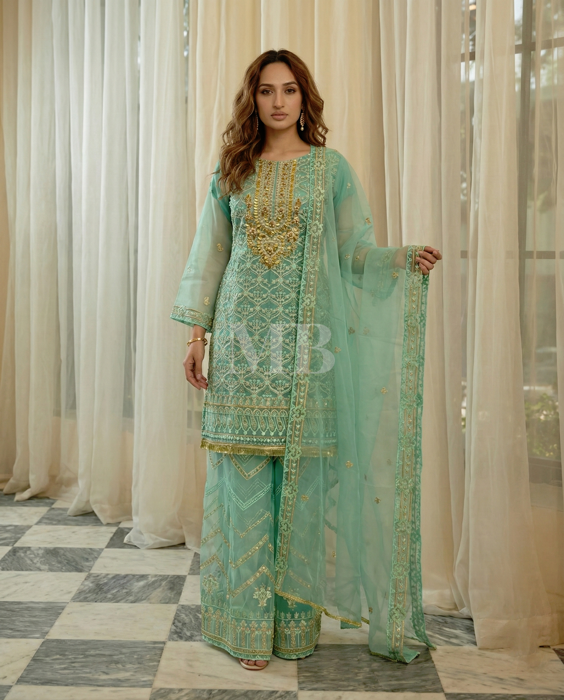 Upgrade your wardrobe with the BB 1 Frozi, a stunning 3PC Ready To Wear set in a beautiful Frozi color. The elegant Organza shirt and dupatta add a touch of luxury, while the Grip gharara offers both comfort and style. Perfect for any occasion, this set is a must-have for any fashion-forward individual.