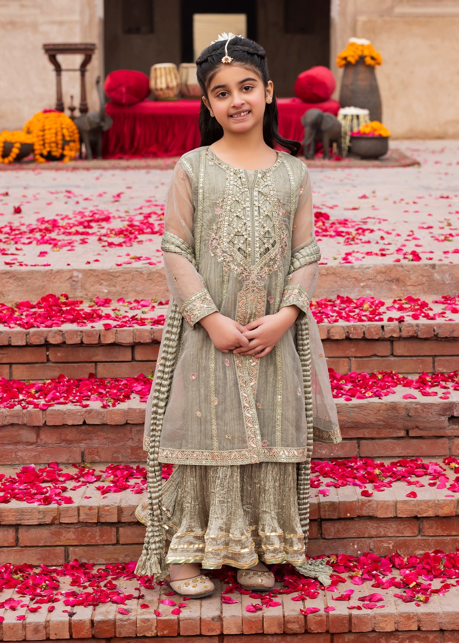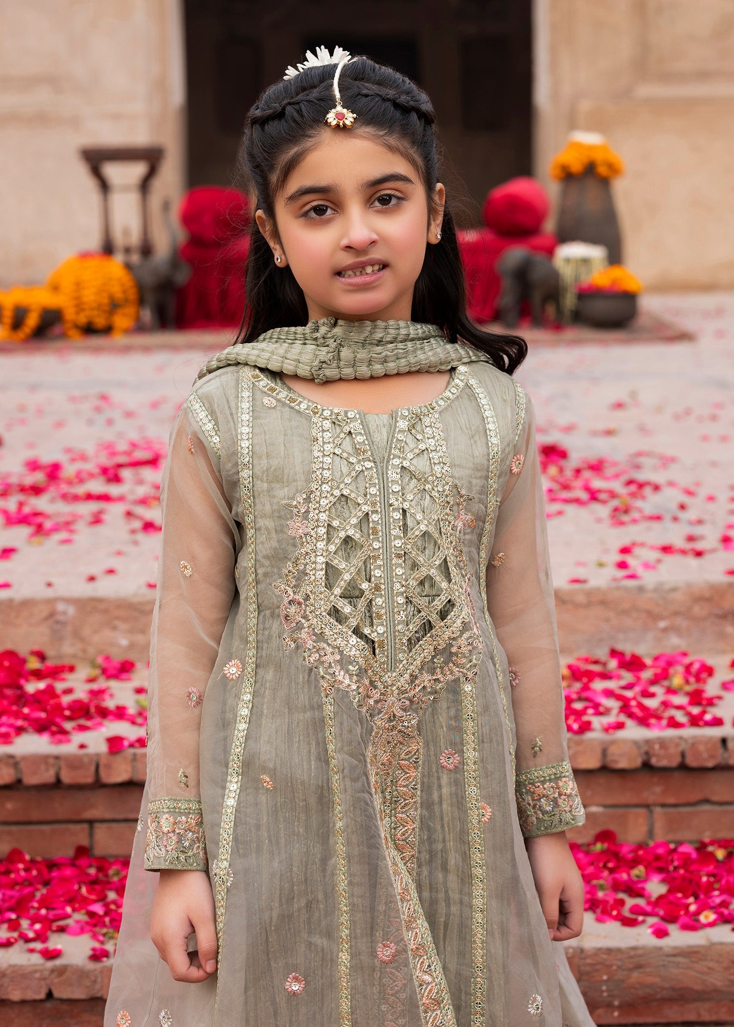 Dupatta: Organza dupatta offering a light, sheer drape that enhances the formal appeal.