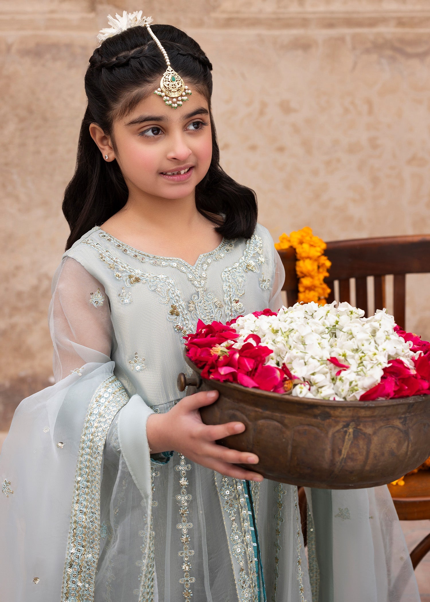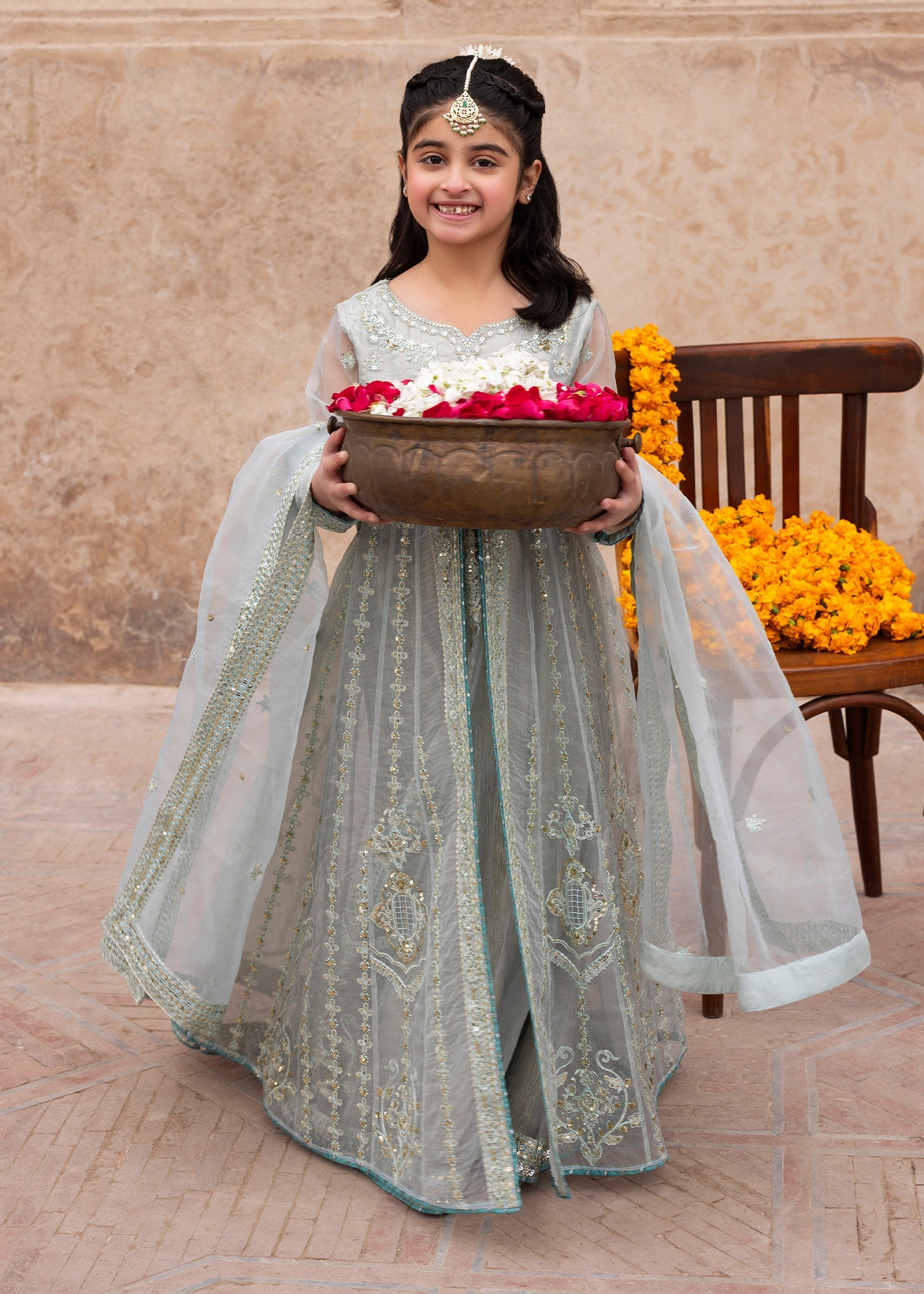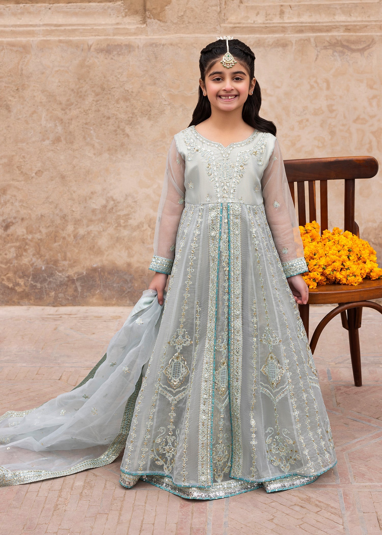 Dupatta: Organza dupatta offering a light, sheer drape that enhances the ensemble’s formal charm.