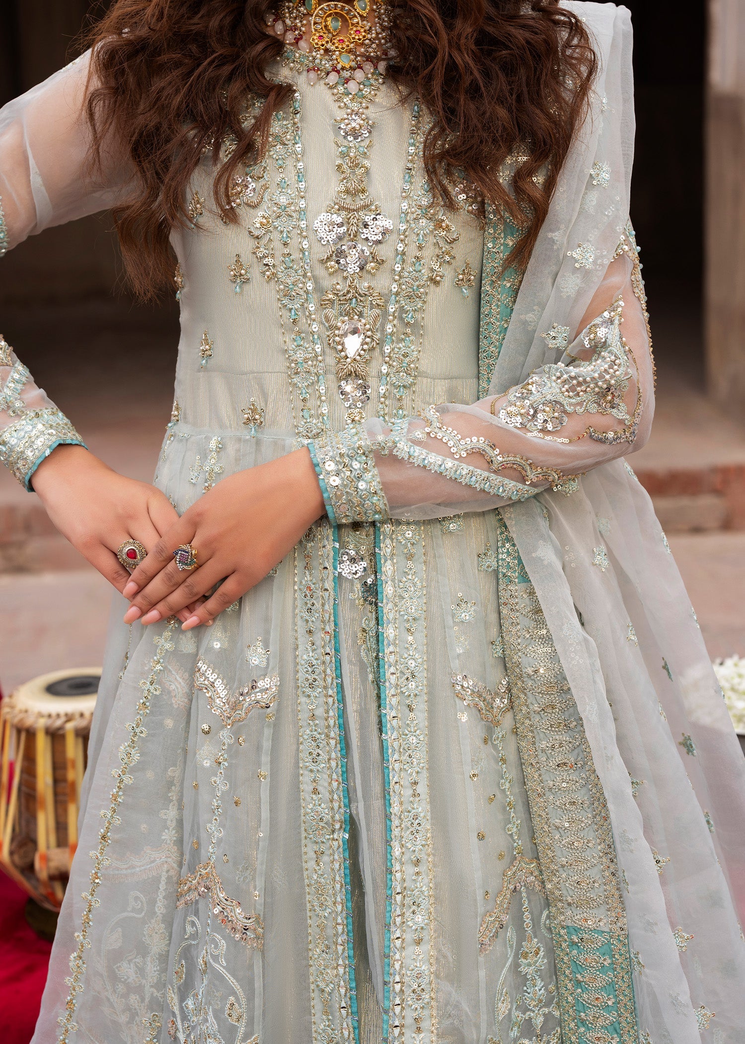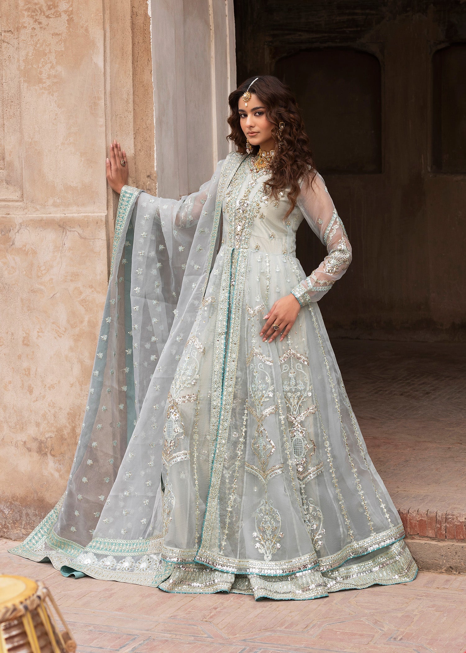 Dupatta: Organza dupatta offering a light, sheer drape that enhances the ensemble’s formal charm.