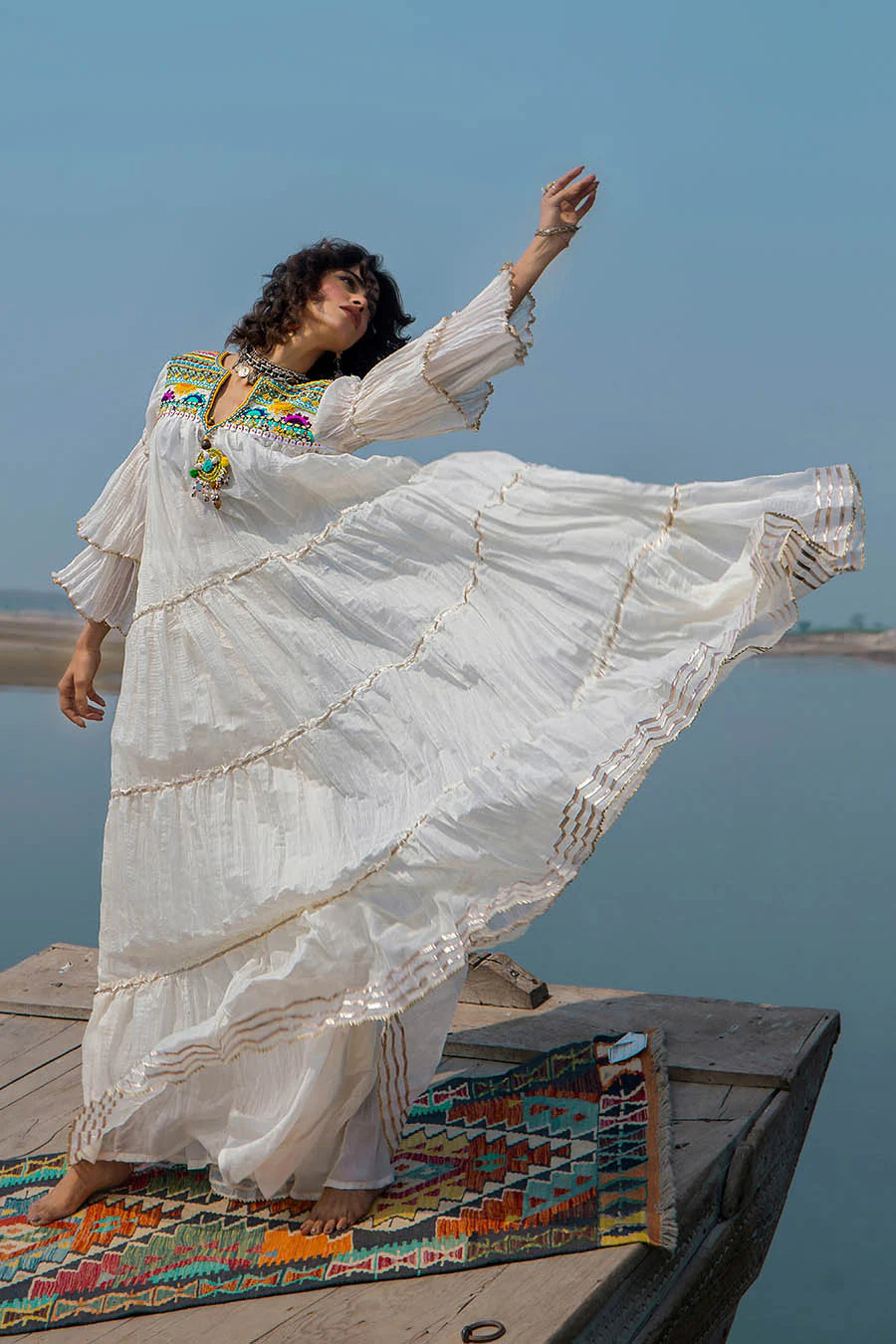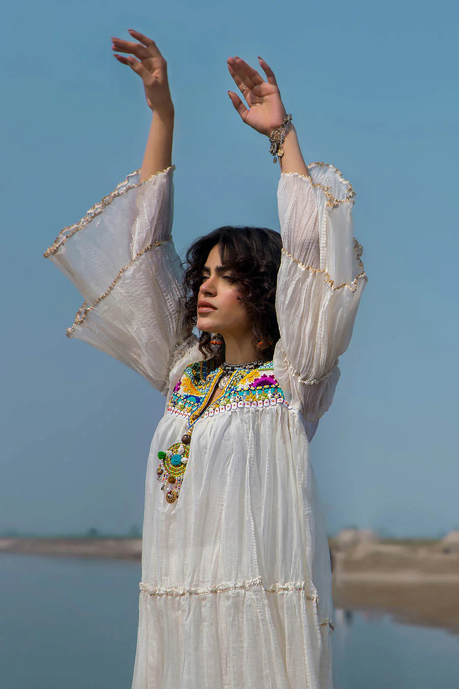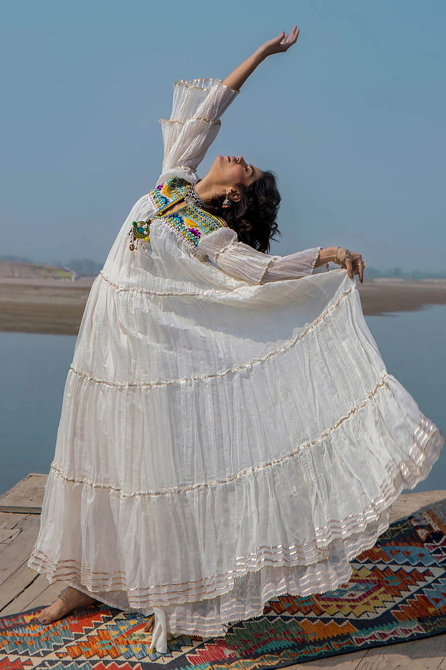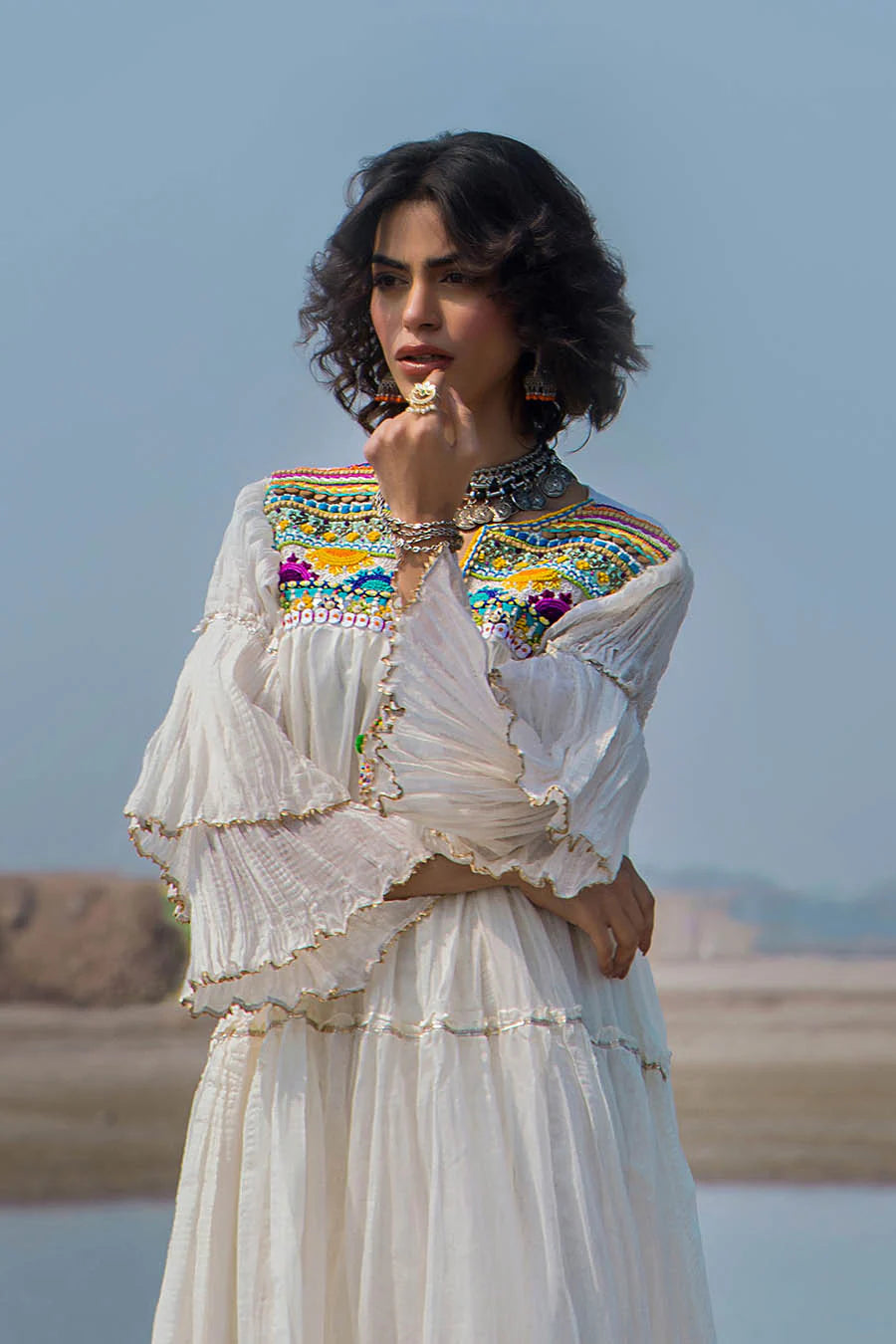 You'll adore this effortlessly chic ensemble, designed for both style and comfort. The crushed tissue cotton shirt gives a graceful look, paired with a flowy crinkle chiffon dupatta. The cotton sharara adds a touch of tradition while ensuring ease of movement. Perfect for any special occasion!