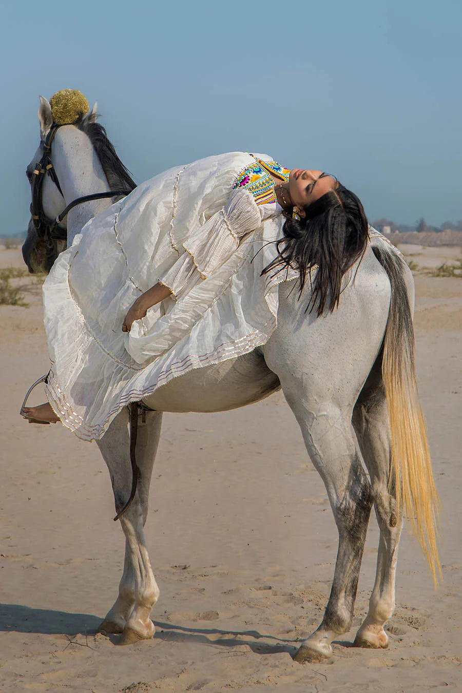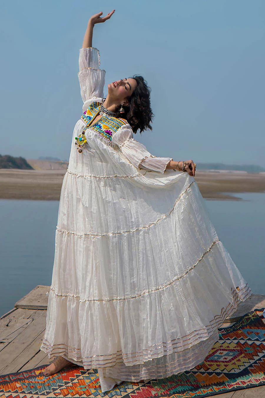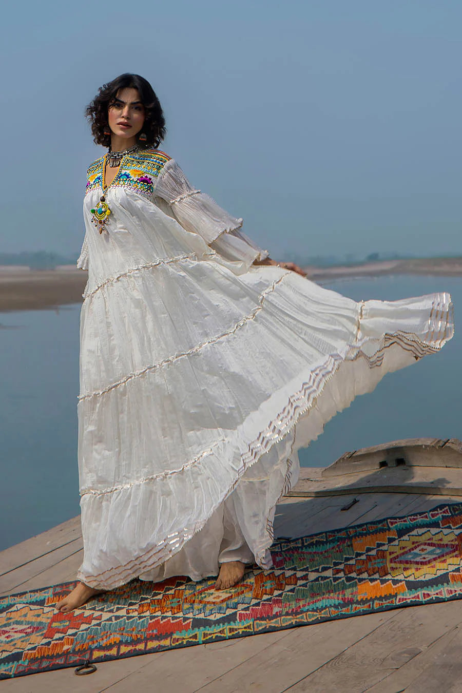 You'll adore this effortlessly chic ensemble, designed for both style and comfort. The crushed tissue cotton shirt gives a graceful look, paired with a flowy crinkle chiffon dupatta. The cotton sharara adds a touch of tradition while ensuring ease of movement. Perfect for any special occasion!