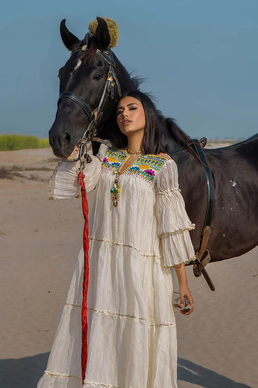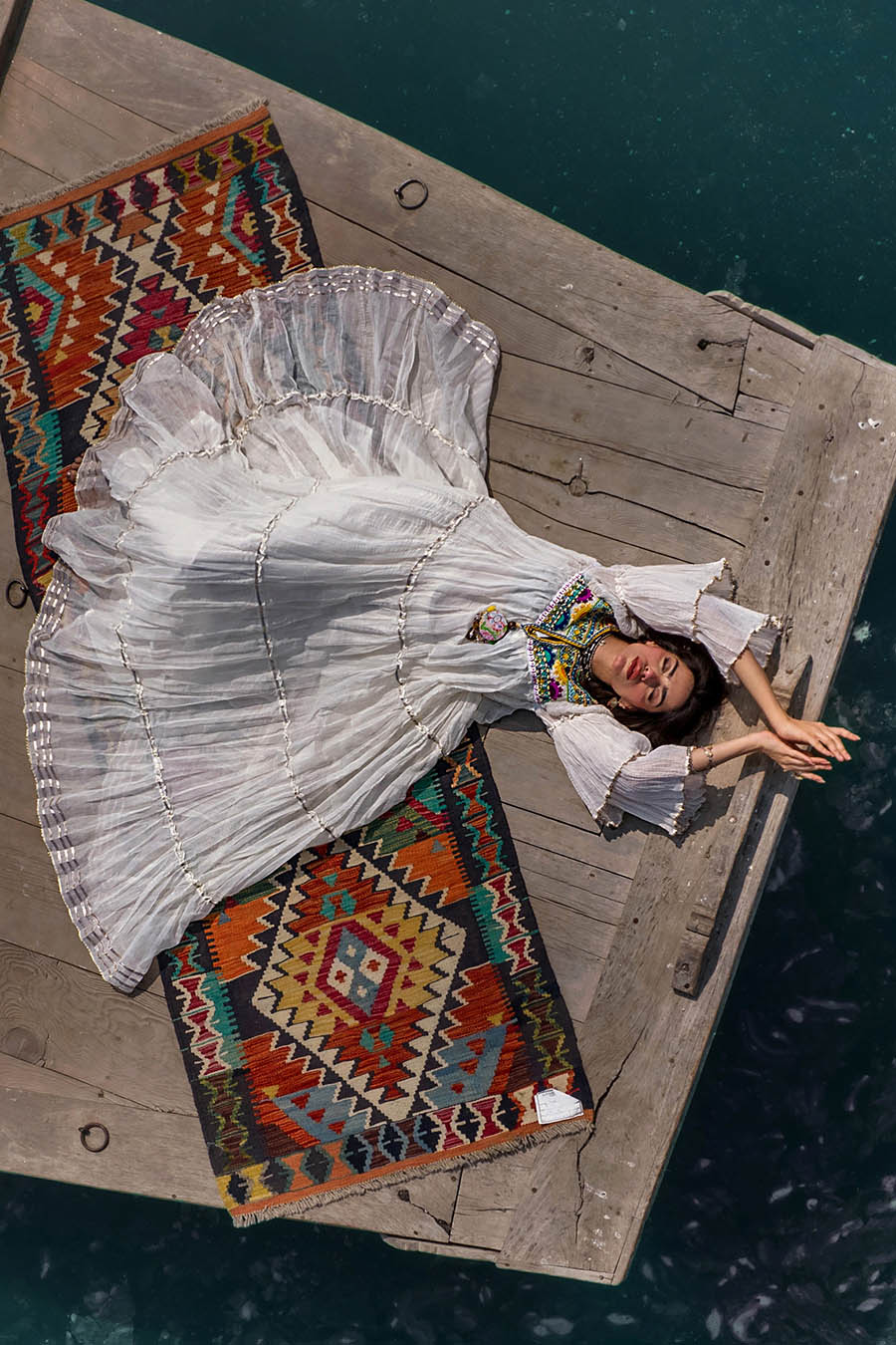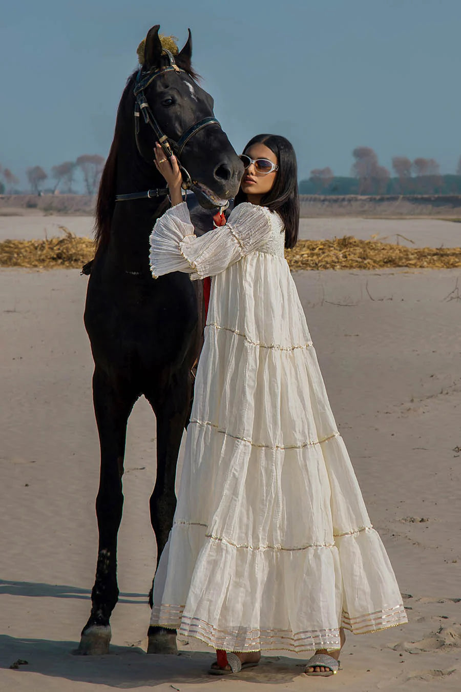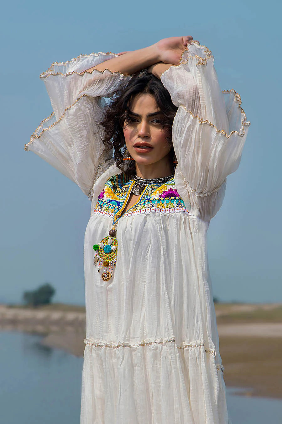 You'll adore this effortlessly chic ensemble, designed for both style and comfort. The crushed tissue cotton shirt gives a graceful look, paired with a flowy crinkle chiffon dupatta. The cotton sharara adds a touch of tradition while ensuring ease of movement. Perfect for any special occasion!