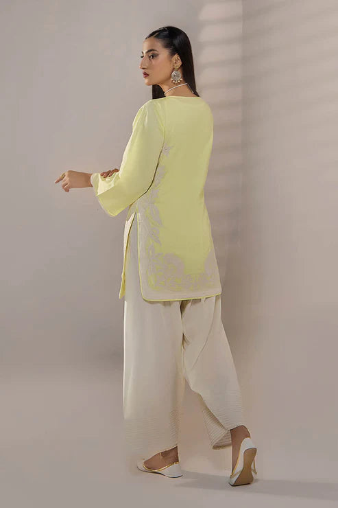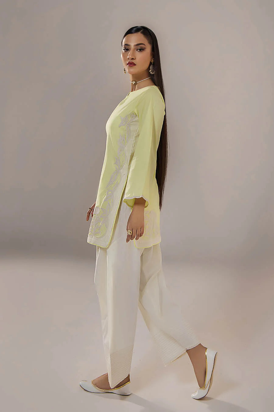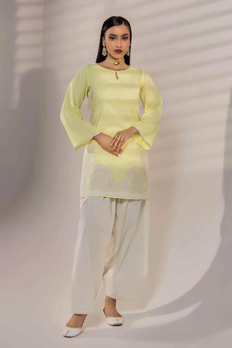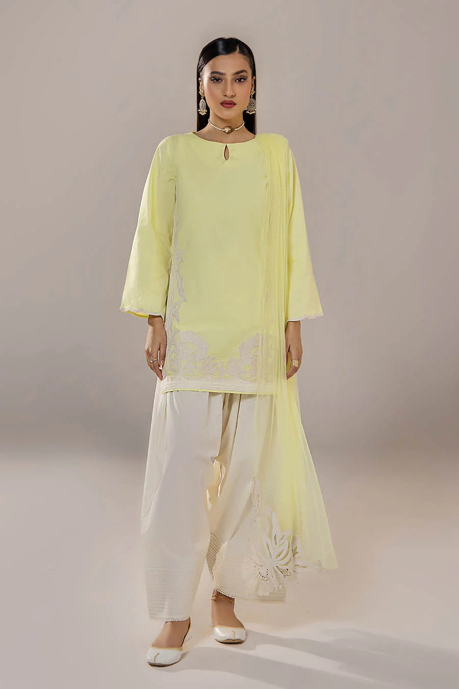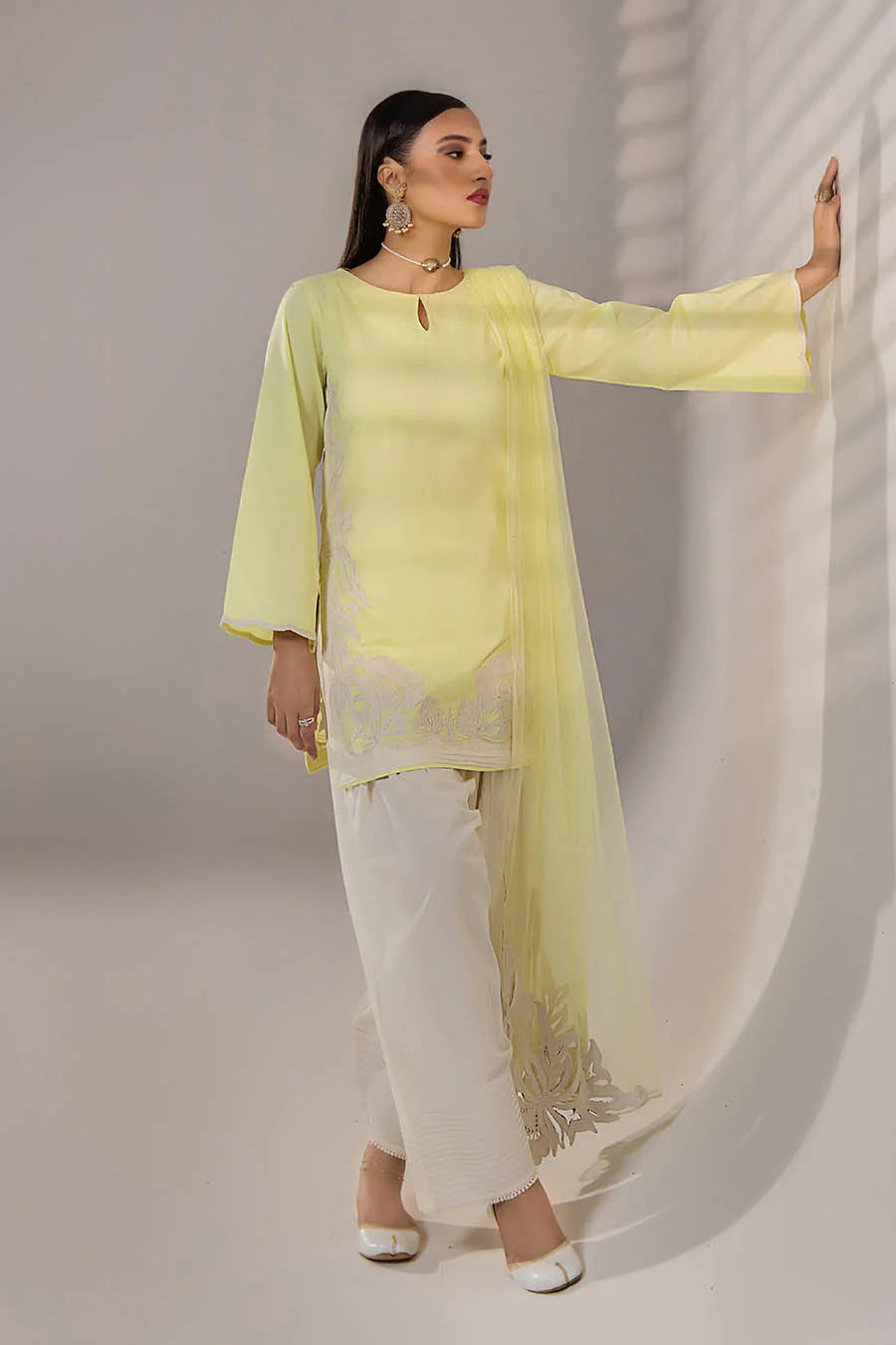 The F175 outfit includes a beautiful shirt, attached sleeves, a dupatta, and comfortable elasticized waistband trousers. Made from high-quality materials, the shirt and sleeves are 100% pure Doria cotton, while the dupatta is made from net fabric. The trousers are also made from 100% pure cotton for a comfortable fit. Elevate your wardrobe with this elegant and stylish ensemble.