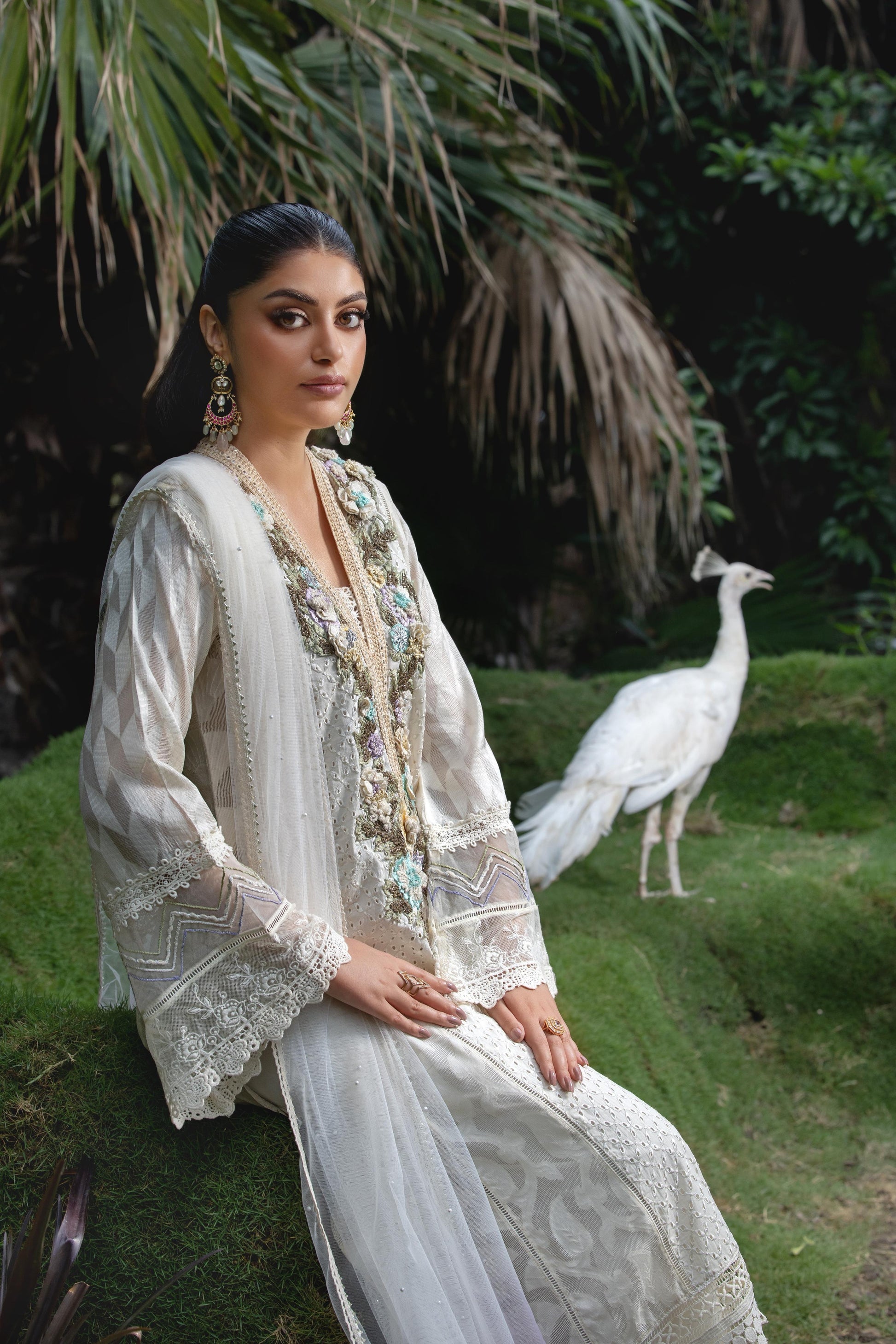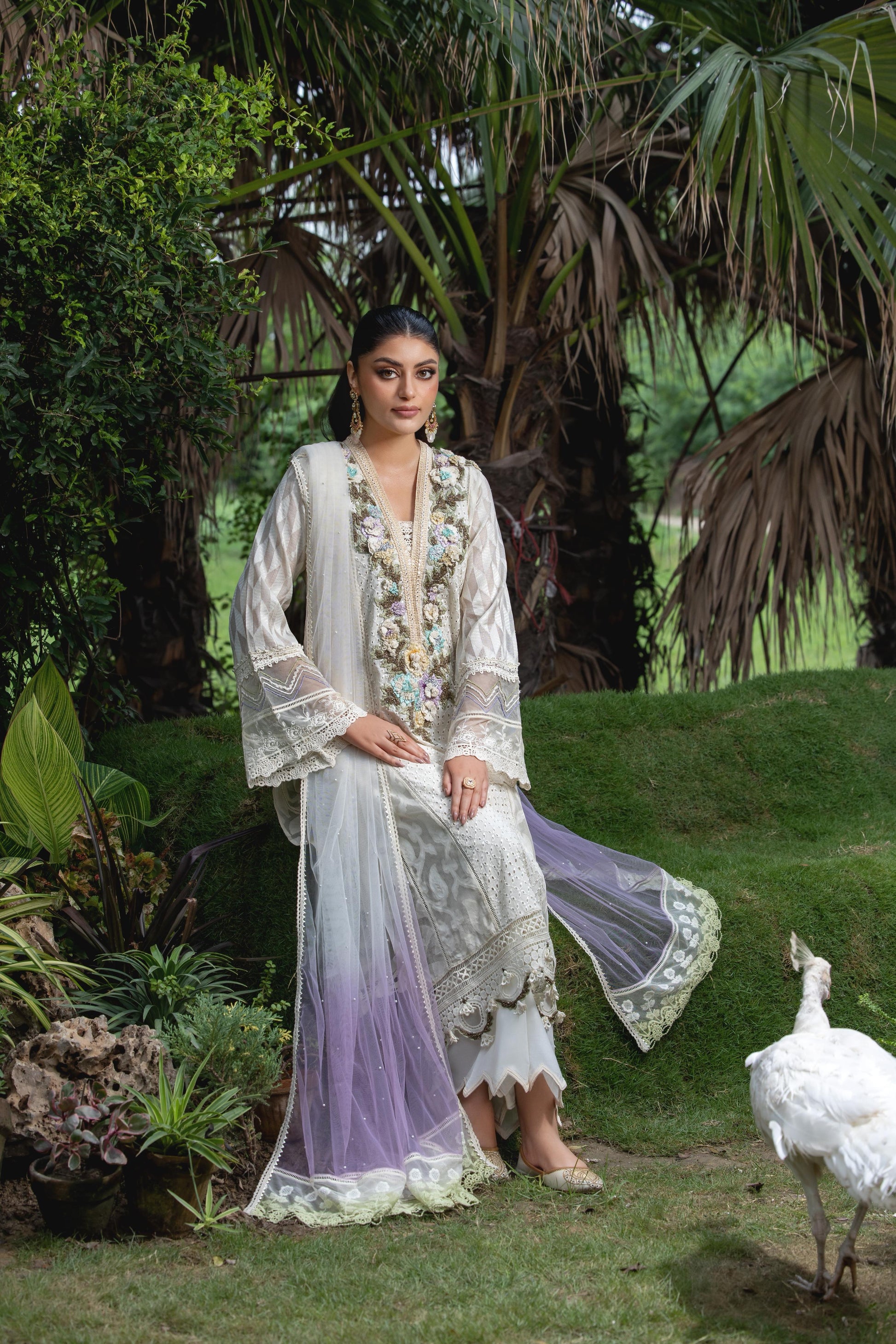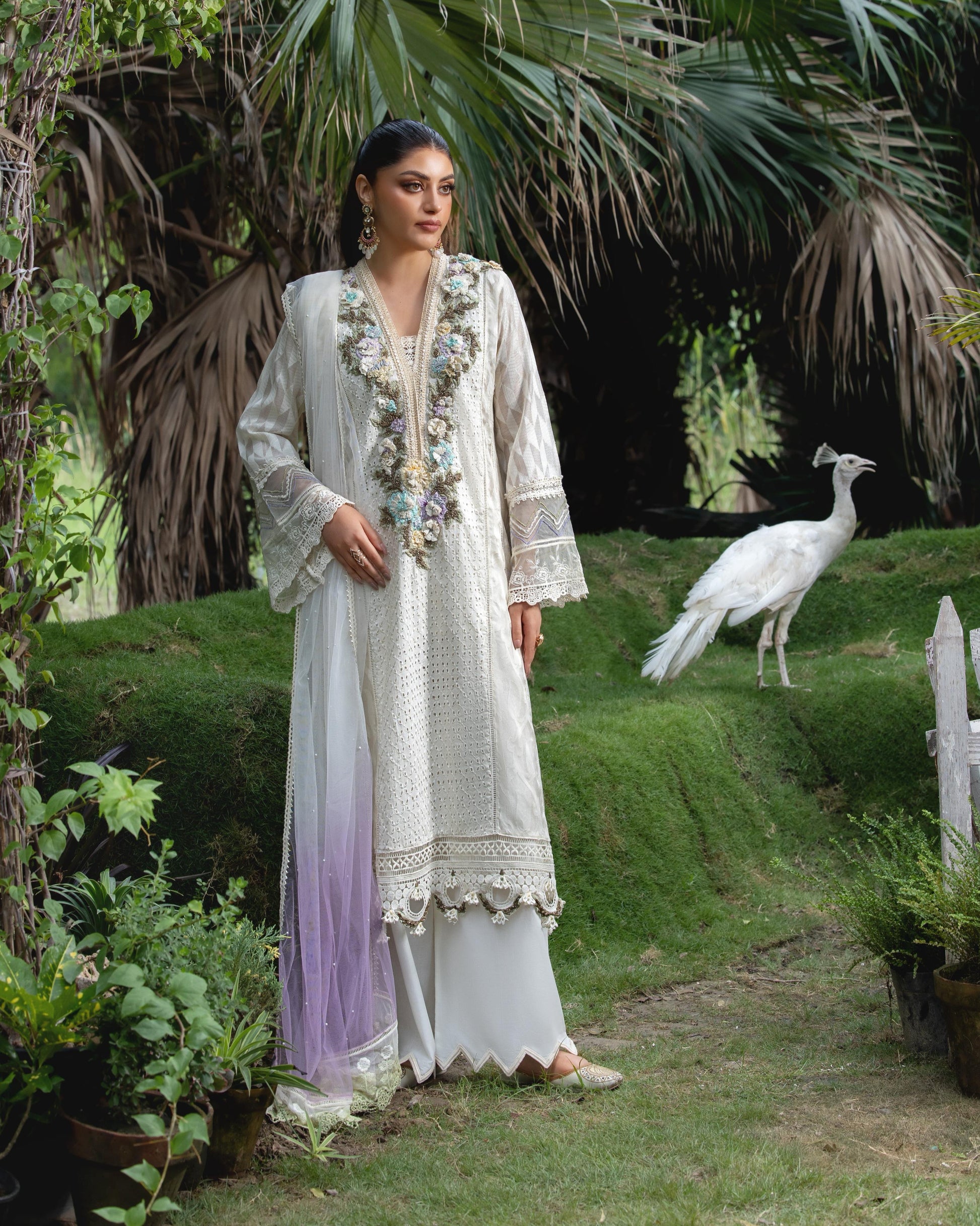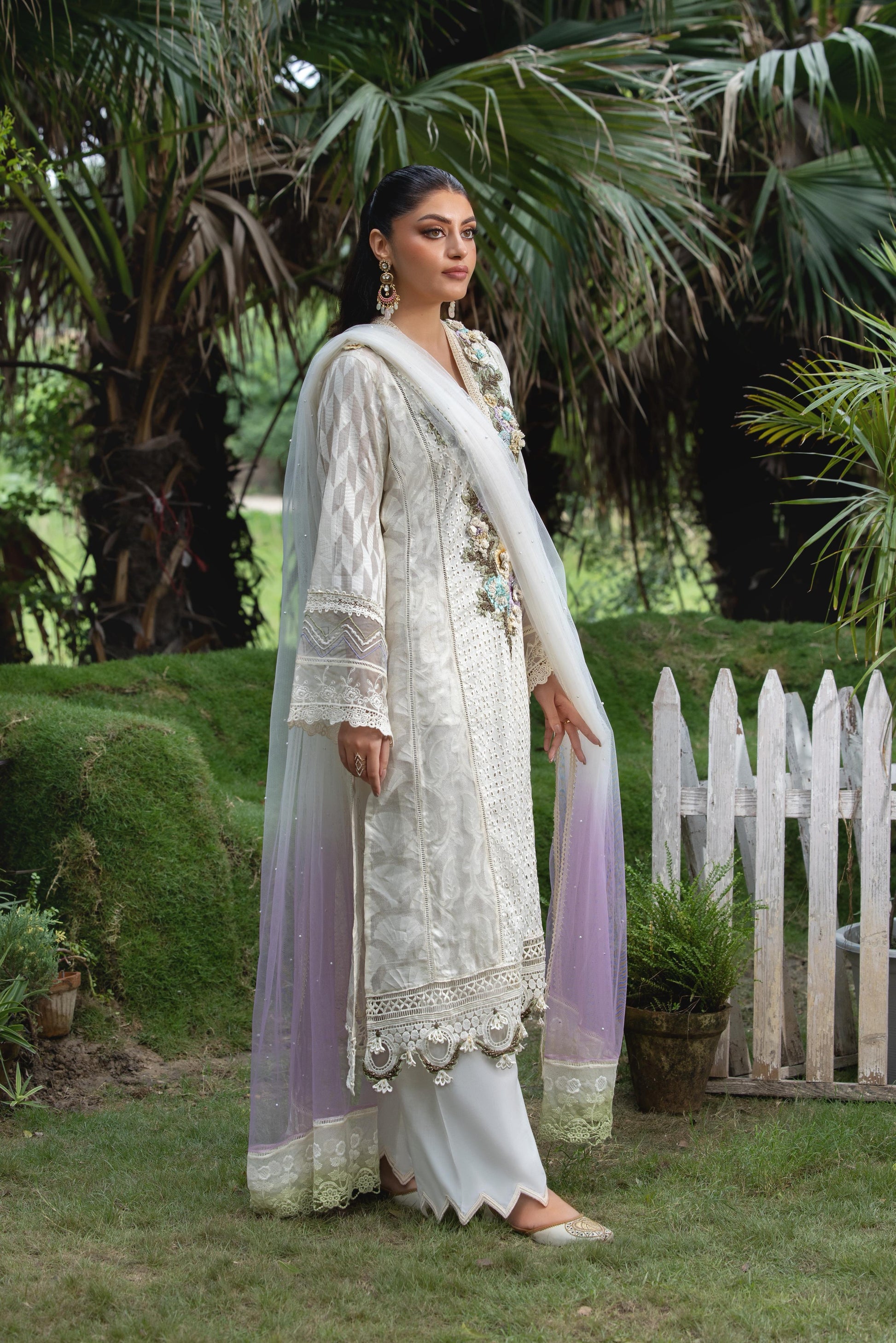 Discover the perfect look. Its intriguing details make it a must-have for any wardrobe. Designed for comfort and style, you'll feel confident and fashionable every time you wear it. Upgrade your look today with this outfit. This elegant 3PC ensemble features a long cotton shirt for a timeless silhouette, paired with a net dupatta that adds a light, graceful touch. The cotton flapper trousers complete the look with ease and flow, perfect for both casual and semi-formal occasions.