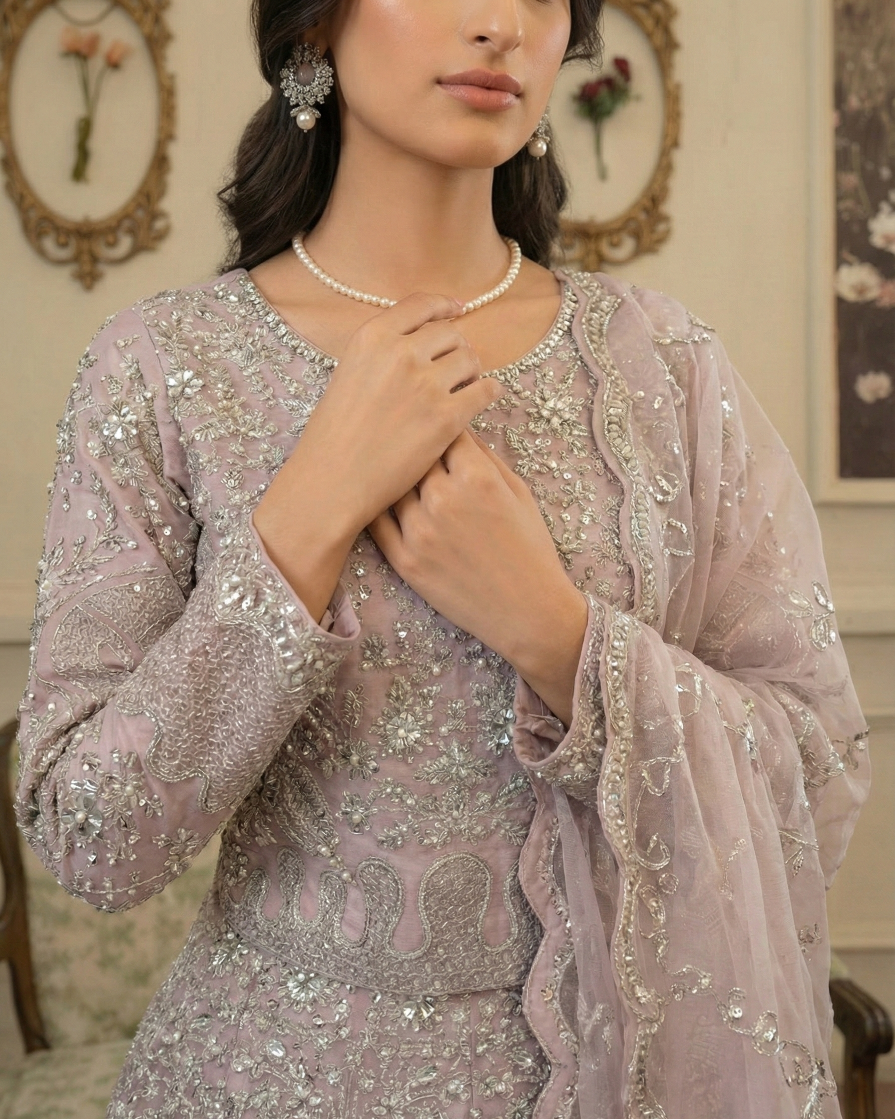 Step into elegance and charm with this stunning pink ensemble — a statement look that exudes grace and sophistication for weddings, festive gatherings, or grand celebrations.