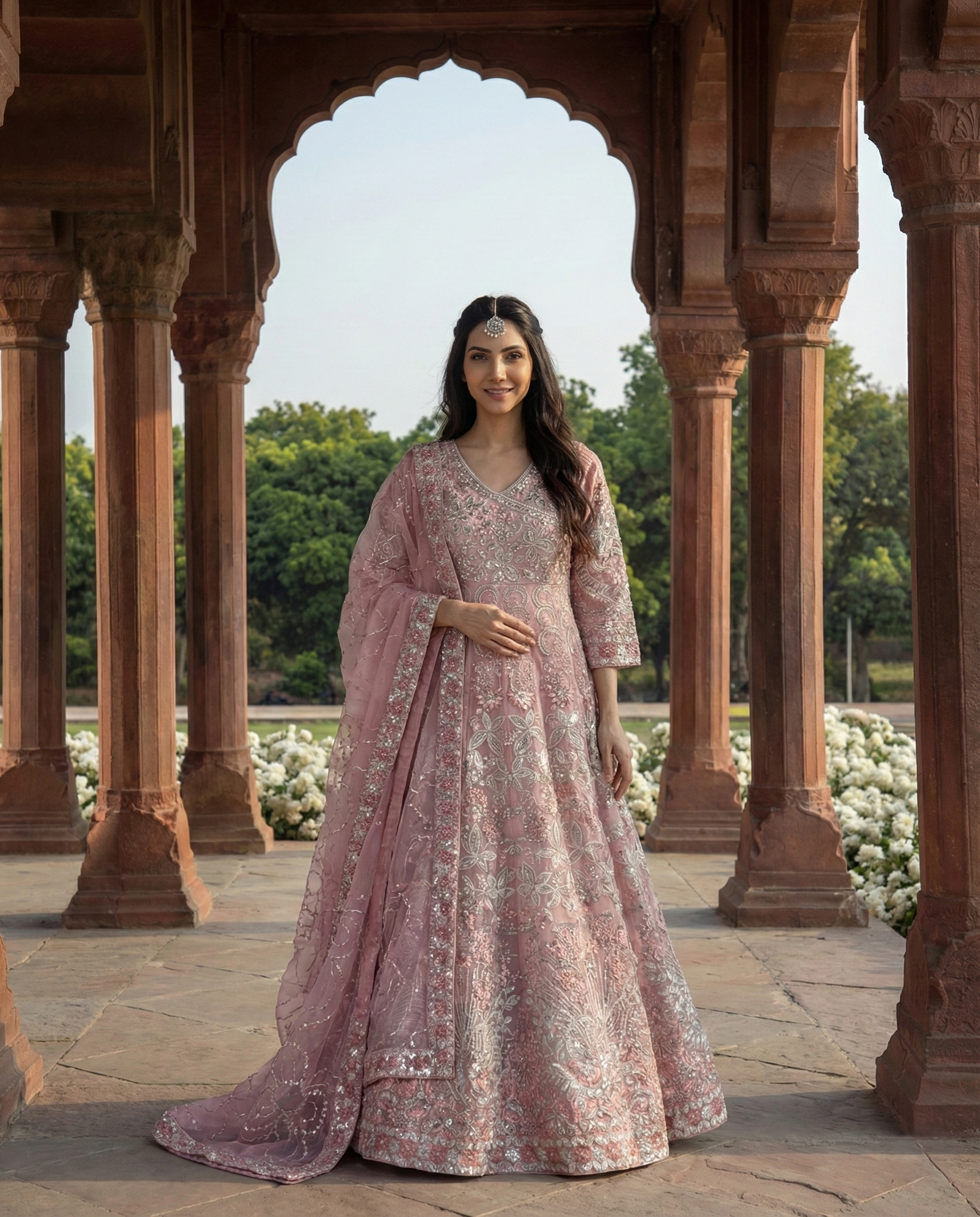 Dupatta: Organza dupatta completing the look with a soft, elegant drape.