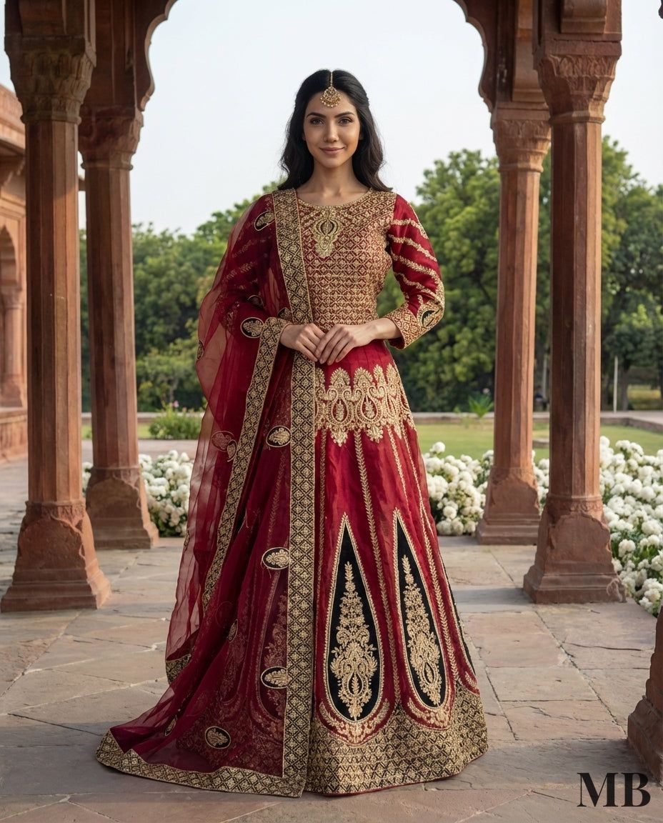 Discover the perfect look. Its organza fabric, adorned with intricate thread, sequin, and handmade embroidery, creates a luxurious and festive silhouette. The elegant detailing and soft textures make it ideal for weddings, dawat, or special occasions, bringing effortless sophistication to your wardrobe.