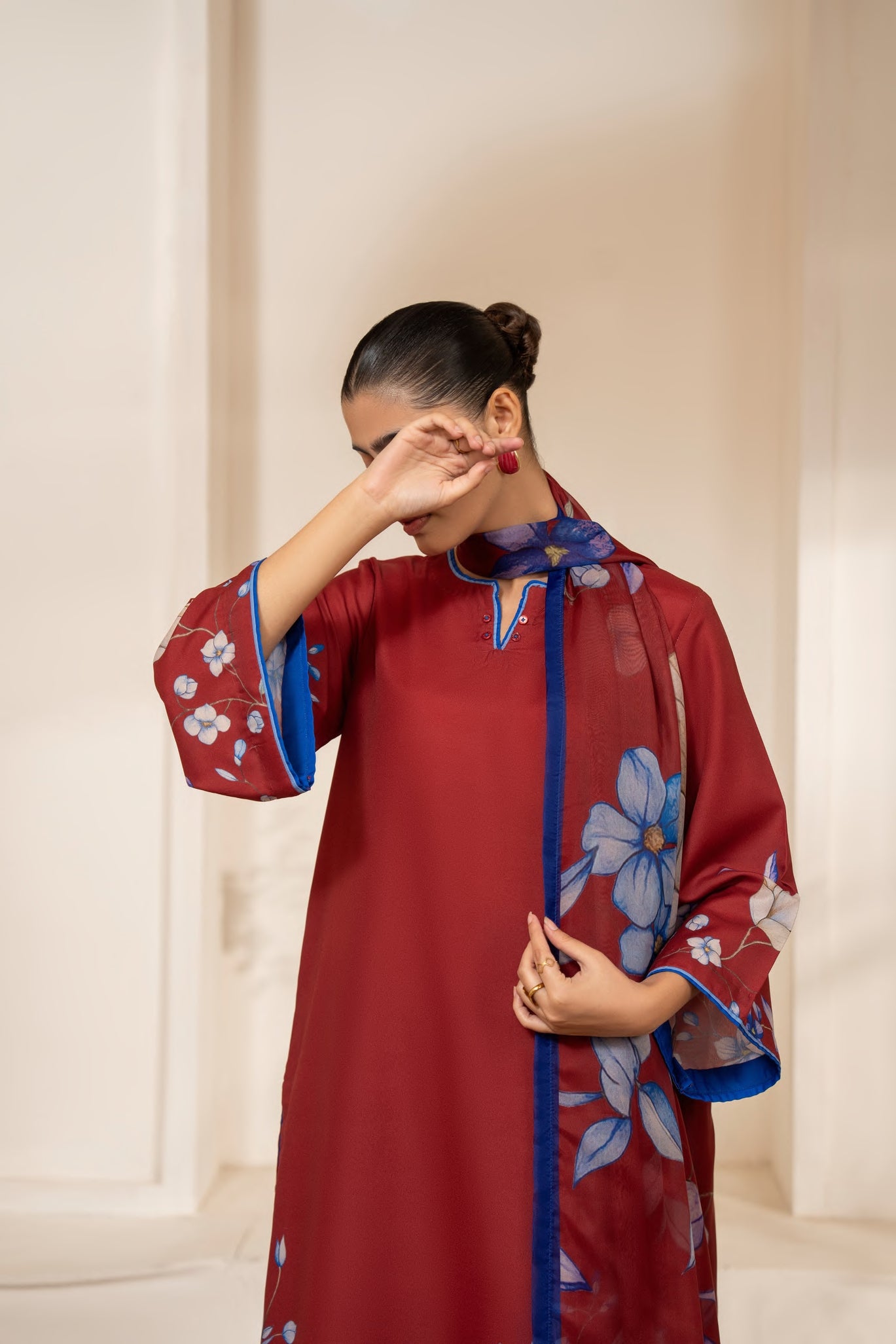 Shirt: Viscose silk kurta with delicate floral prints