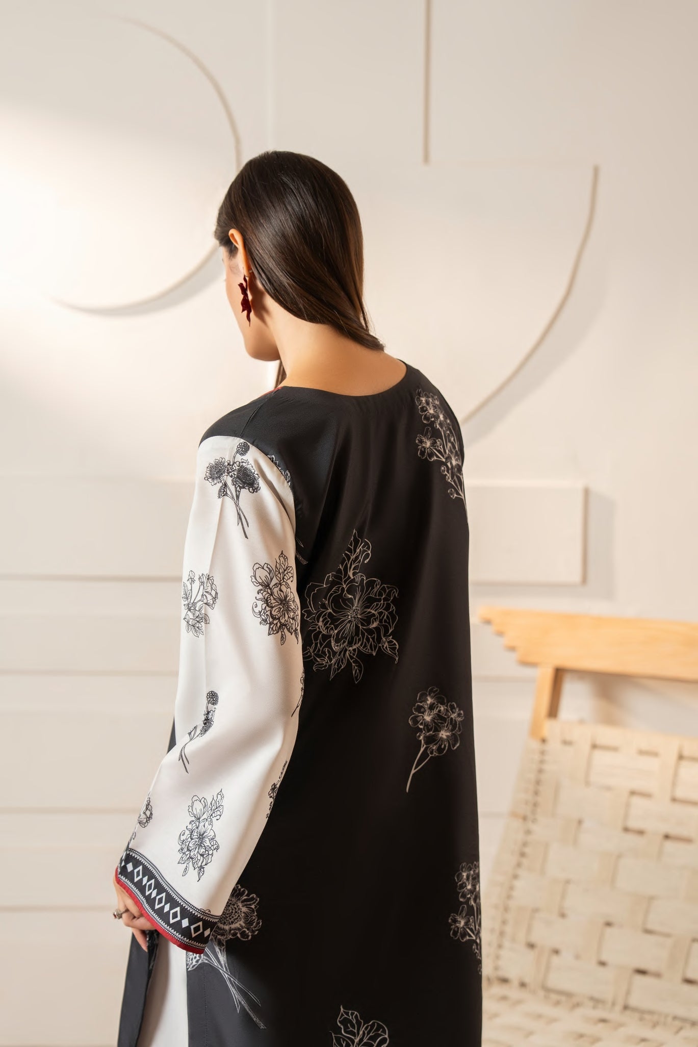 Shirt: Viscose silk kurta with delicate floral prints