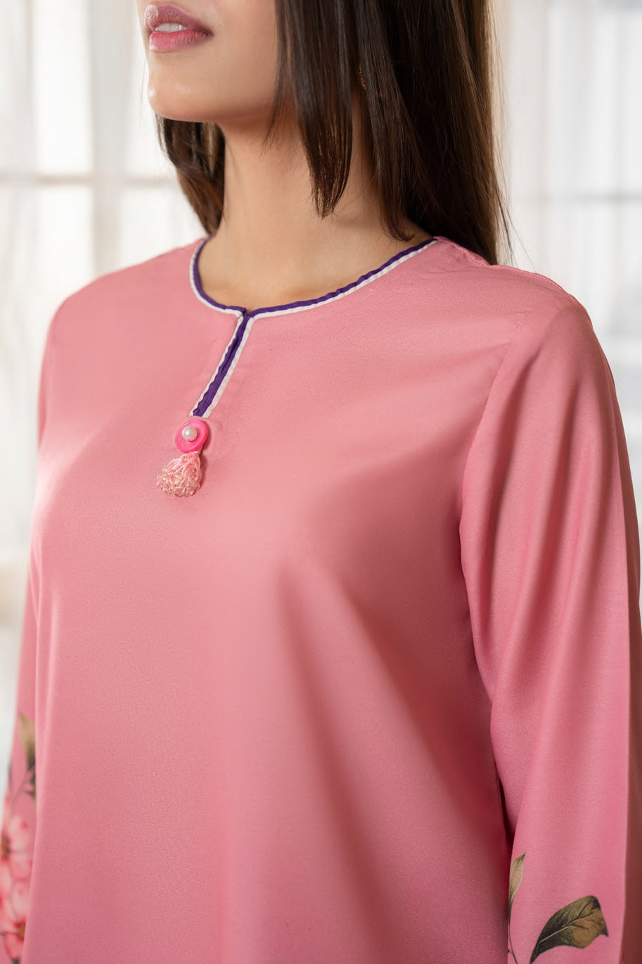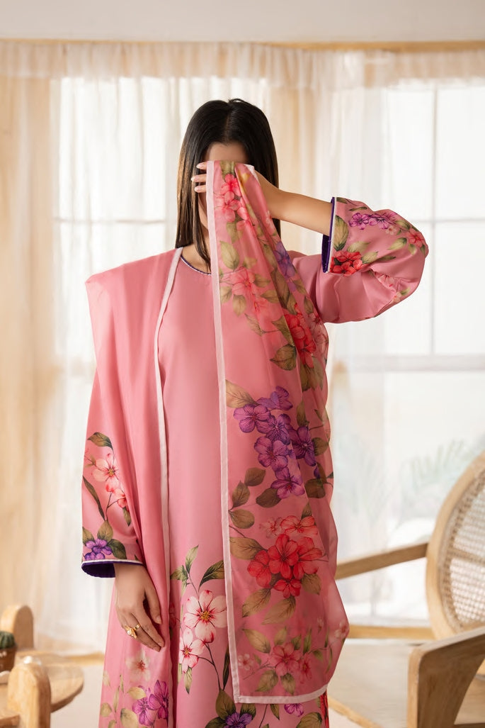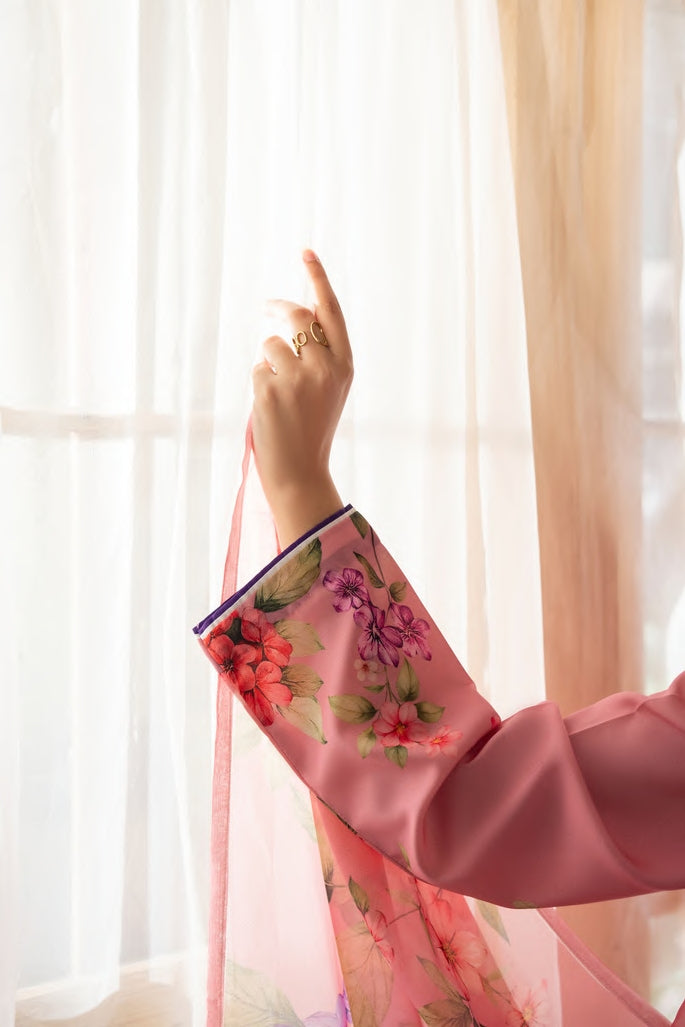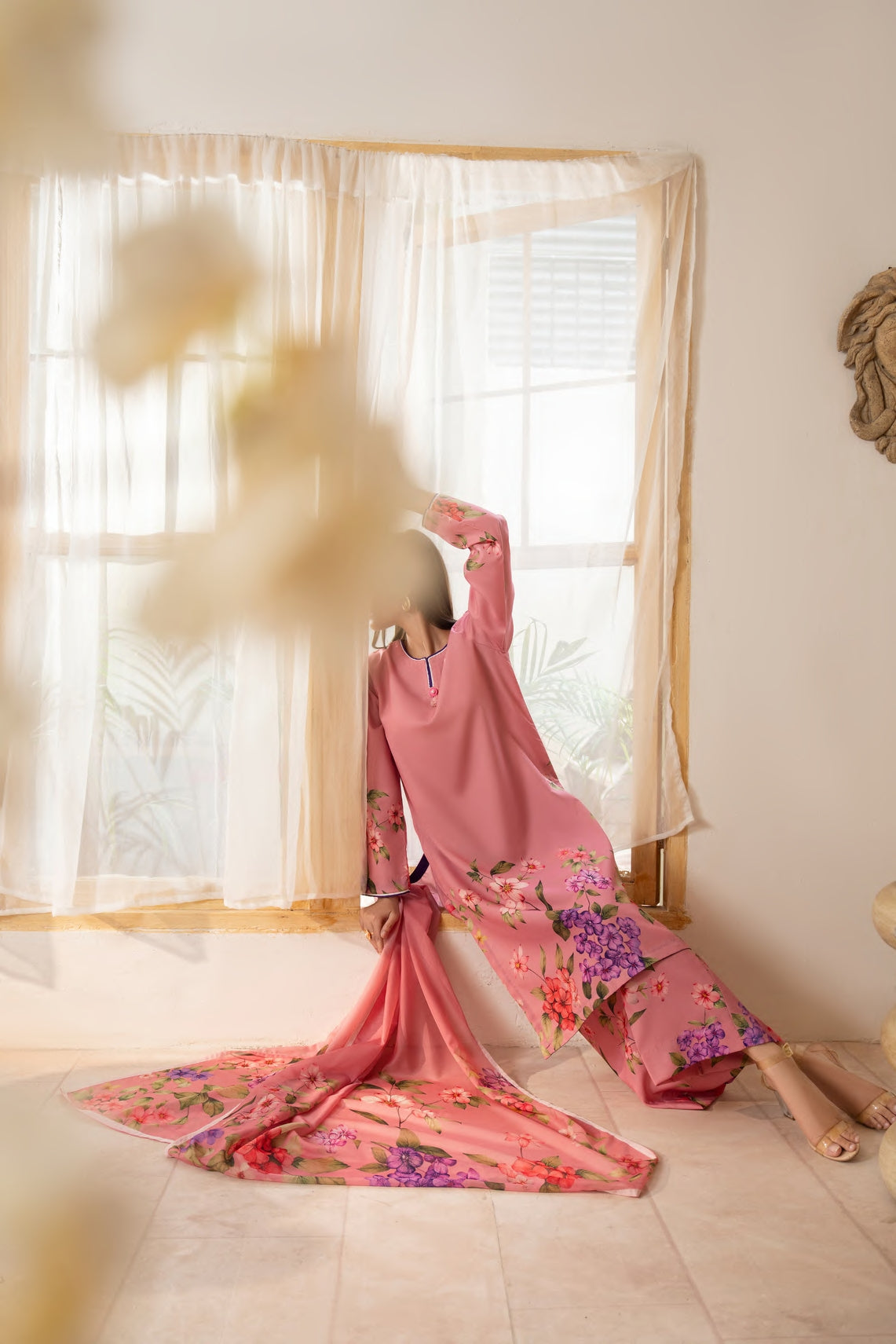 The kurta and wide-legged pants bloom with enchanting floral prints in soft lilac, cherry blossom, and gentle greens, bringing a refreshing yet graceful charm. Crafted from premium viscose silk, this ensemble flows effortlessly with elegance, making it perfect for both casual and formal gatherings.