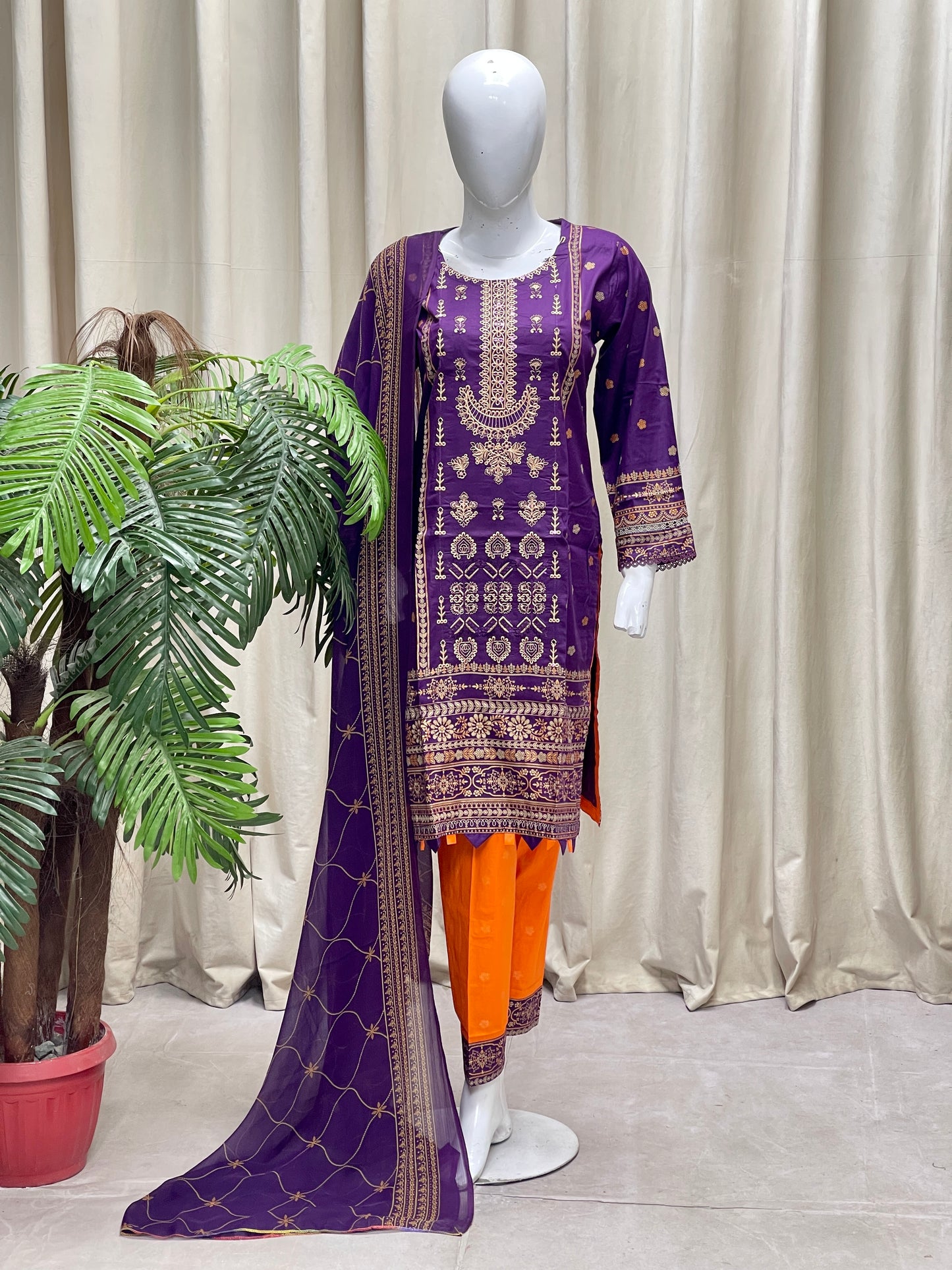 Elevate your summer wardrobe with HM Lawn's luxurious 3PC READY TO WEAR collection. The cutline shirt and trouser are made from breathable lawn and cotton fabrics, while the chiffon dupatta adds a touch of elegance. Stay cool and stylish all season long.