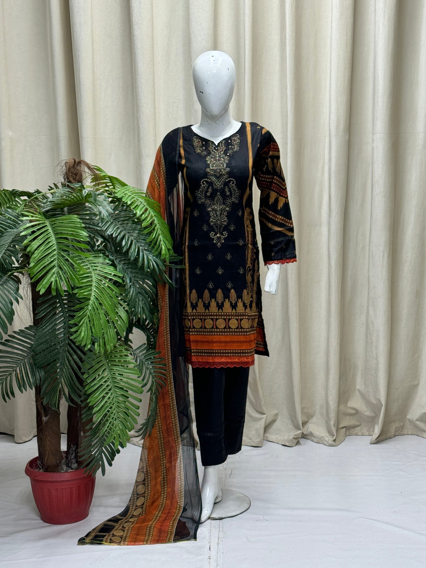 Elevate your summer wardrobe with HM Lawn's 3PC READY TO WEAR collection. The cutline shirt and trouser are made from breathable lawn and cotton fabrics, while the chiffon dupatta adds a touch of elegance. Stay cool and stylish all season long.
