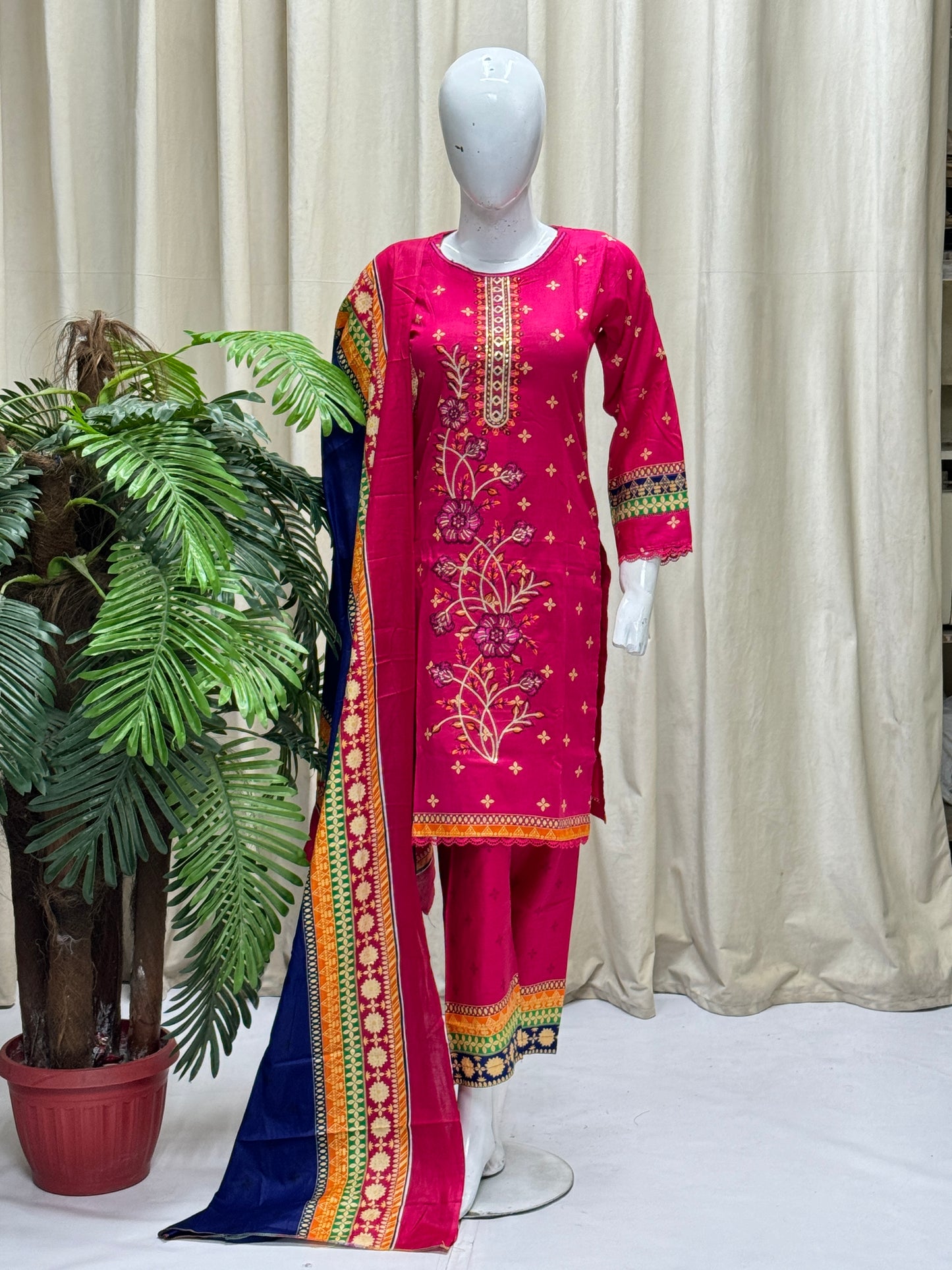 Elevate your summer wardrobe with HM Lawn's 3PC READY TO WEAR collection. The cutline shirt and trouser are made from breathable lawn and cotton fabrics, while the Lawn dupatta adds a touch of elegance. Stay cool and stylish all season long.