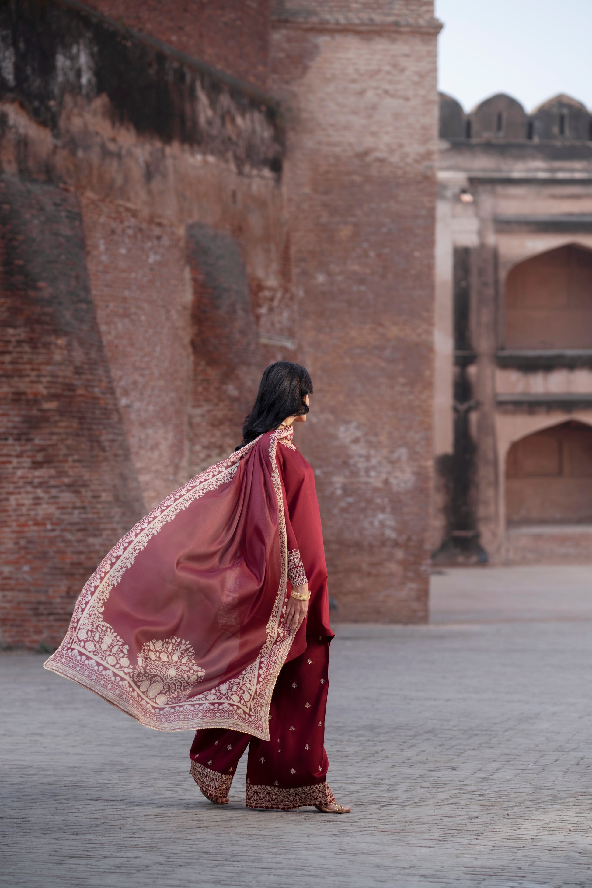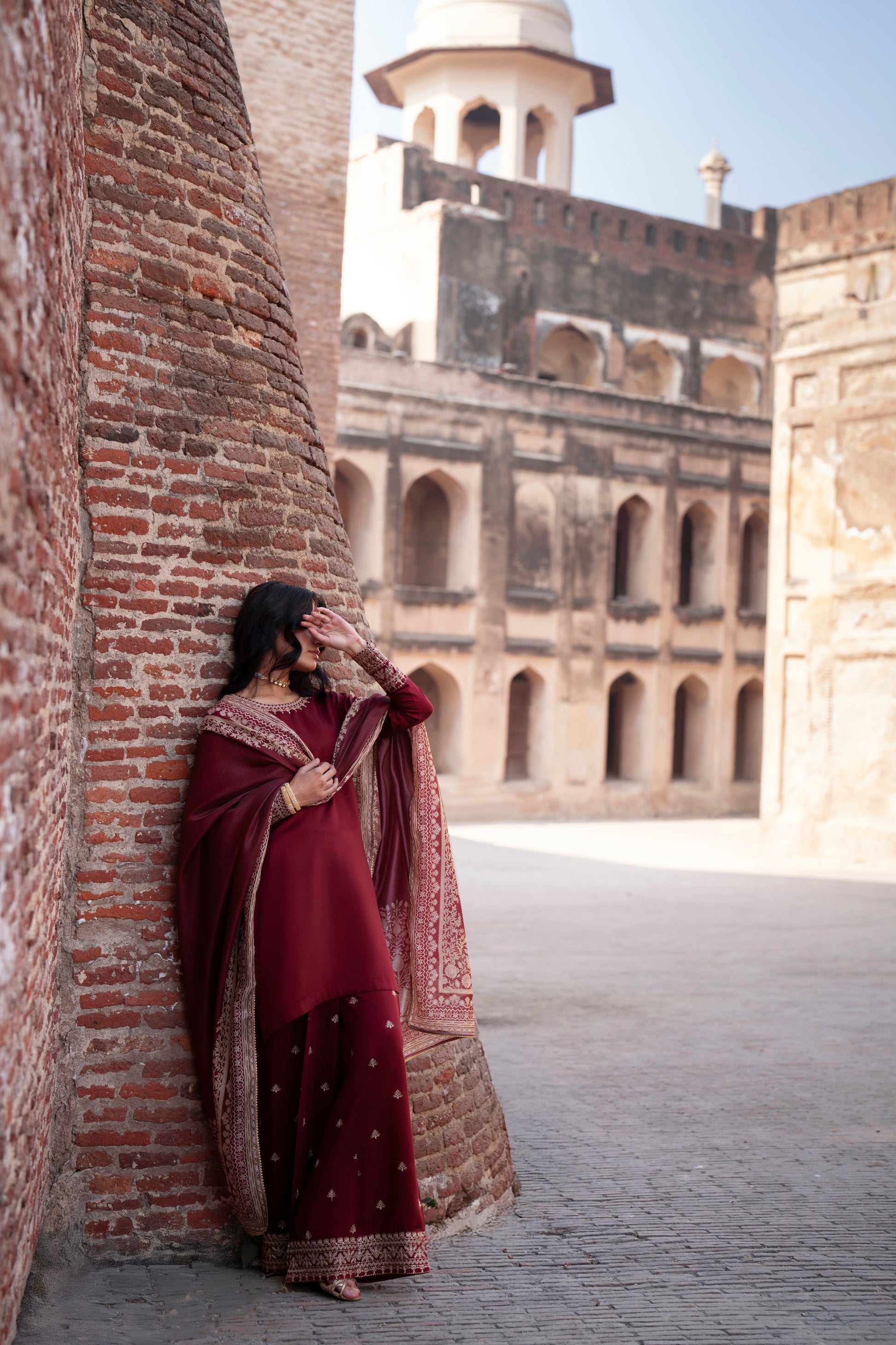 Color: Mehr-e-Ishq — a deep, romantic hue radiating warmth and sophistication.