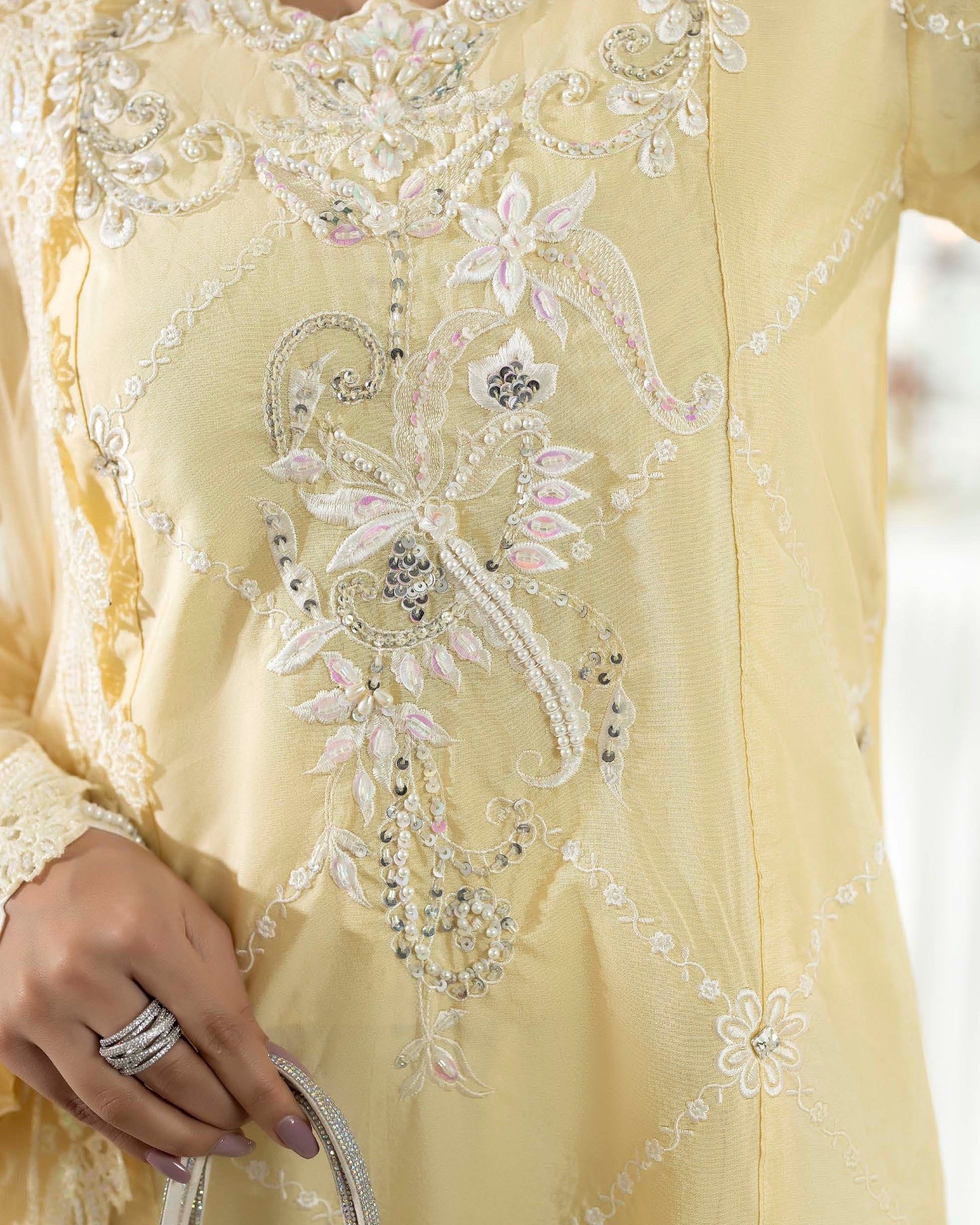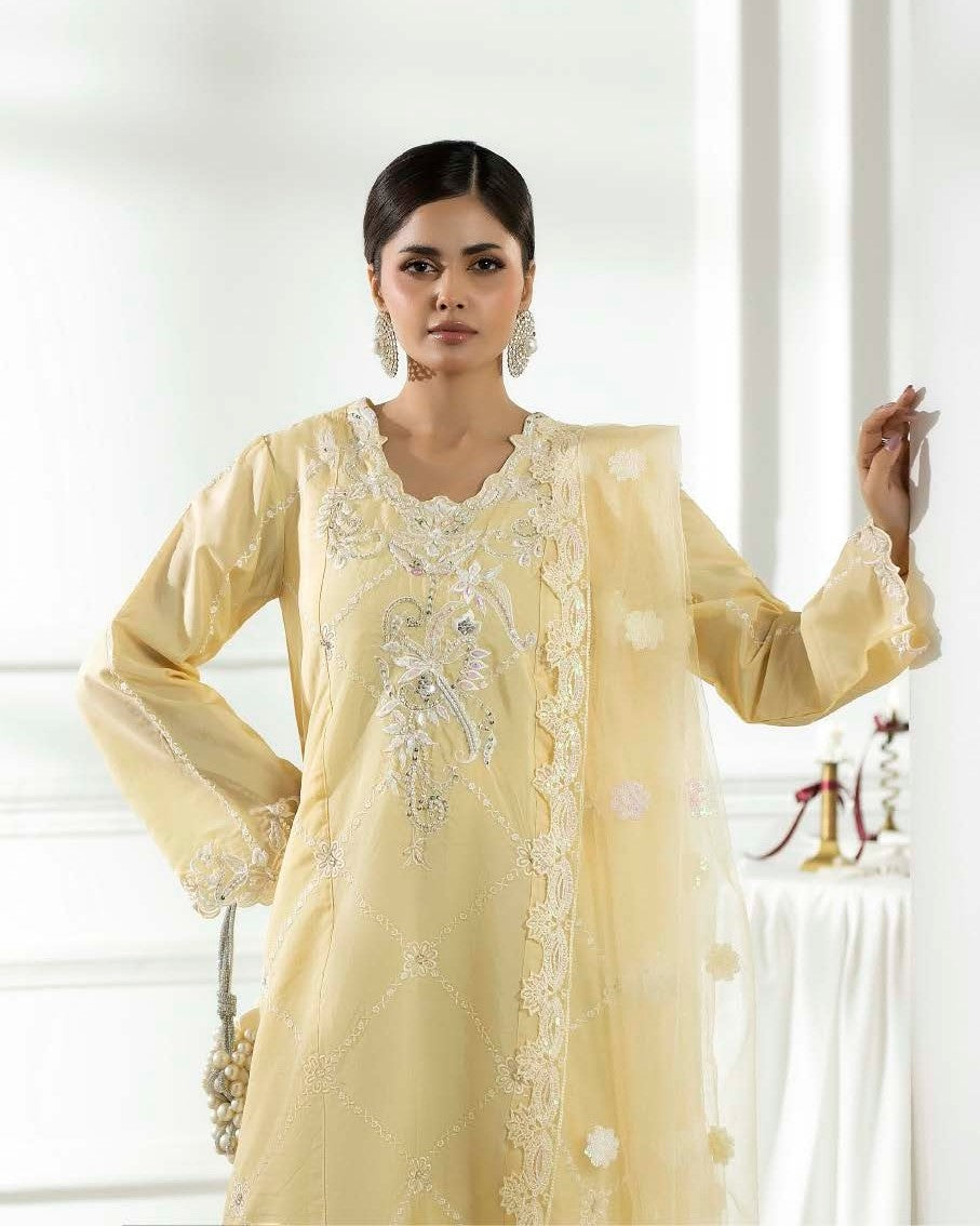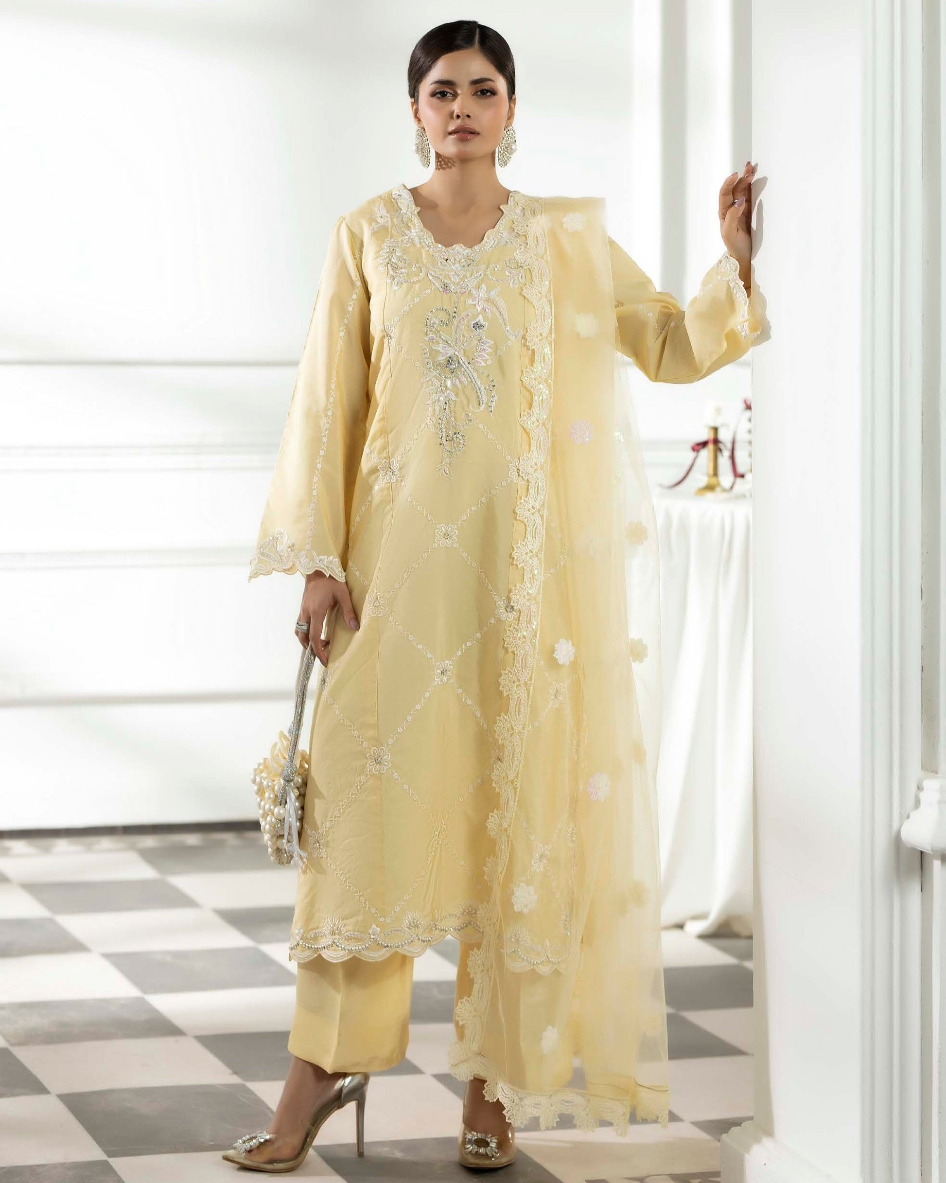 Dupatta: Dupatta finished with a four-sided border, adding a polished and refined touch to complete the look.