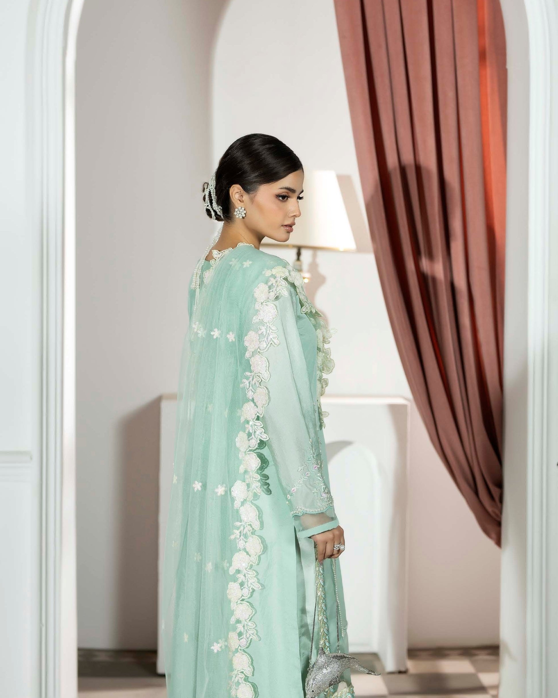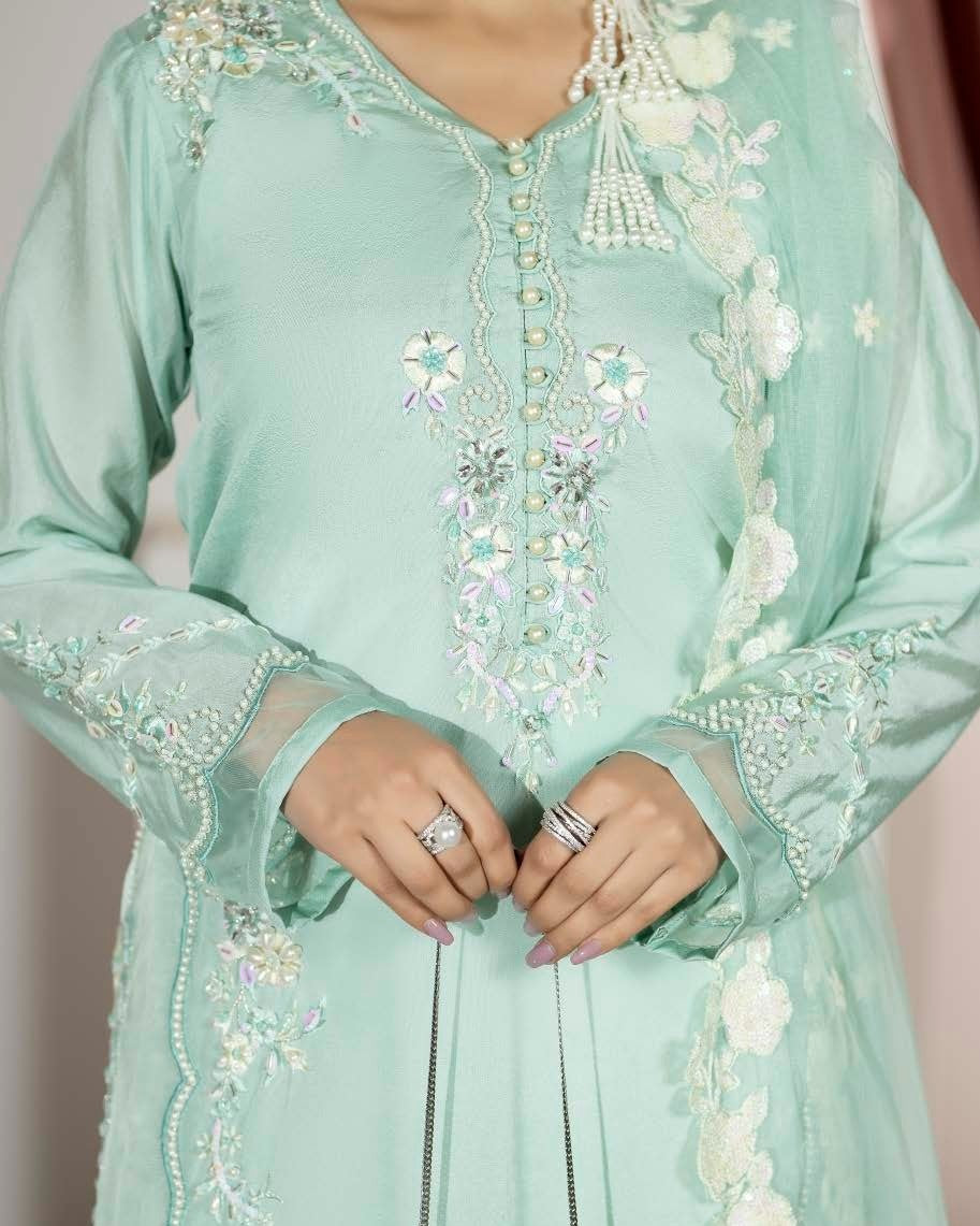 Dupatta: Dupatta finished with a four-sided border, adding a polished and refined touch to complete the look.