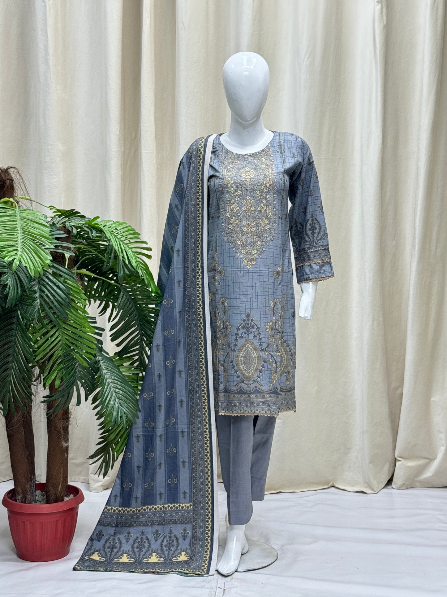 Complete your look with the K&R Dhanak. This 3-piece ready-to-wear set includes a Dhanak shirt, Dhanak trousers, and a matching Dhanak dupatta. Made from high-quality fabric, this set provides superior comfort and effortless style. Perfect for any occasion, this set is a must-have in your wardrobe.