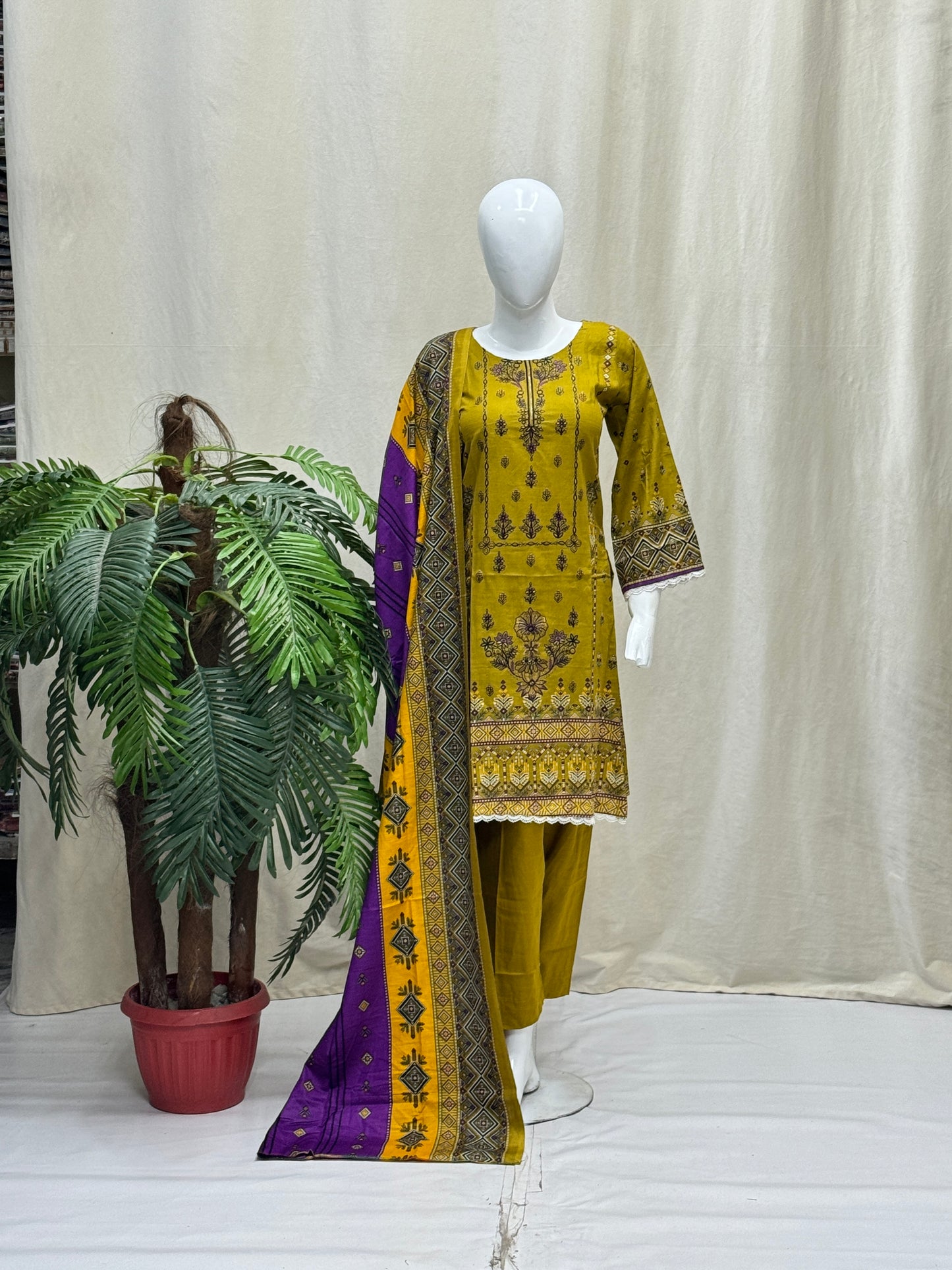 Dress up effortlessly with our K&R Khaddar, a 3-piece ready-to-wear outfit that includes a Khaddar shirt, trouser, and dupatta. Made from high-quality Khaddar fabric, this outfit offers comfort and style all in one. Perfect for any occasion, elevate your wardrobe with our White Brown design.