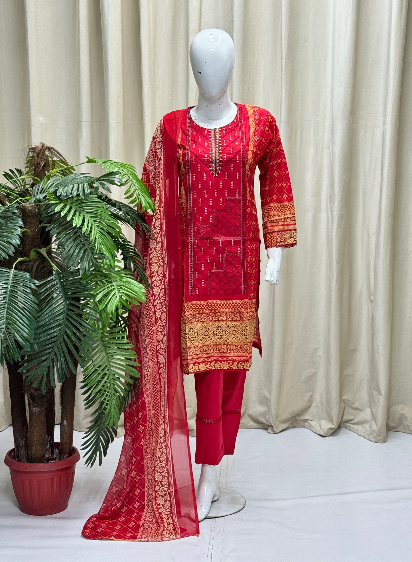 Elevate your summer wardrobe with K&R Lawn's 3PC READY TO WEAR collection. The cutline shirt and trouser are made from breathable lawn and cotton fabrics, while the chiffon dupatta adds a touch of elegance. Stay cool and stylish all season long.