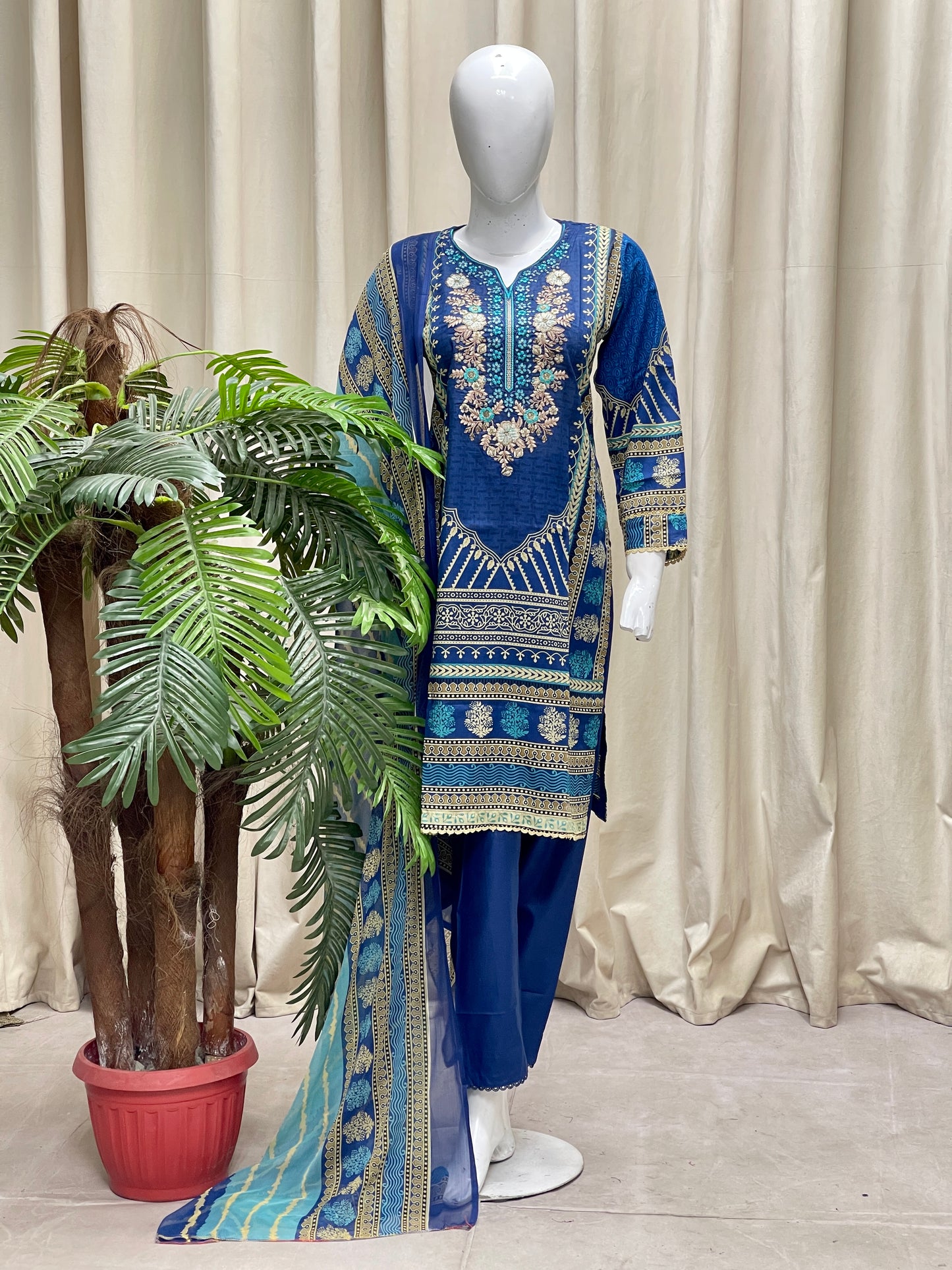 K&R Lawn - Chiffon Dupatta 250 Navy Blue