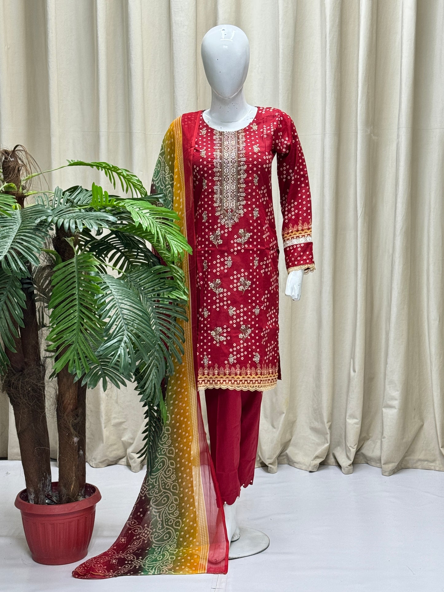 Elevate your summer wardrobe with K&R Lawn's 3PC READY TO WEAR collection. The cutline shirt and trouser are made from breathable lawn and cotton fabrics, while the chiffon dupatta adds a touch of elegance. Stay cool and stylish all season long.