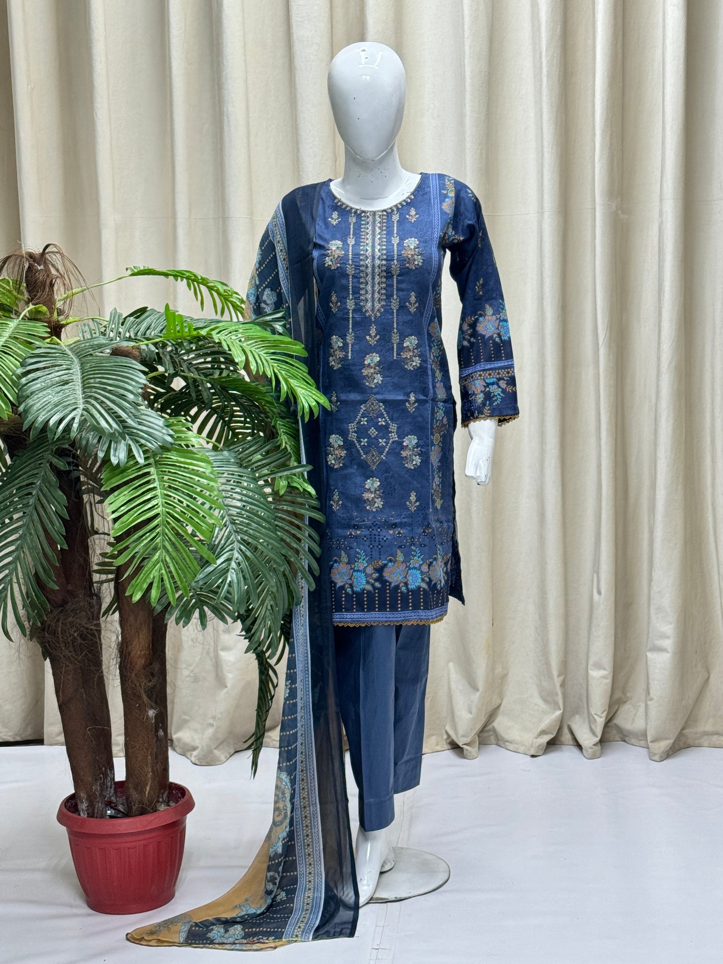 Elevate your summer wardrobe with K&R Lawn's 3PC READY TO WEAR collection. The cutline shirt and trouser are made from breathable lawn and cotton fabrics, while the chiffon dupatta adds a touch of elegance. Stay cool and stylish all season long.