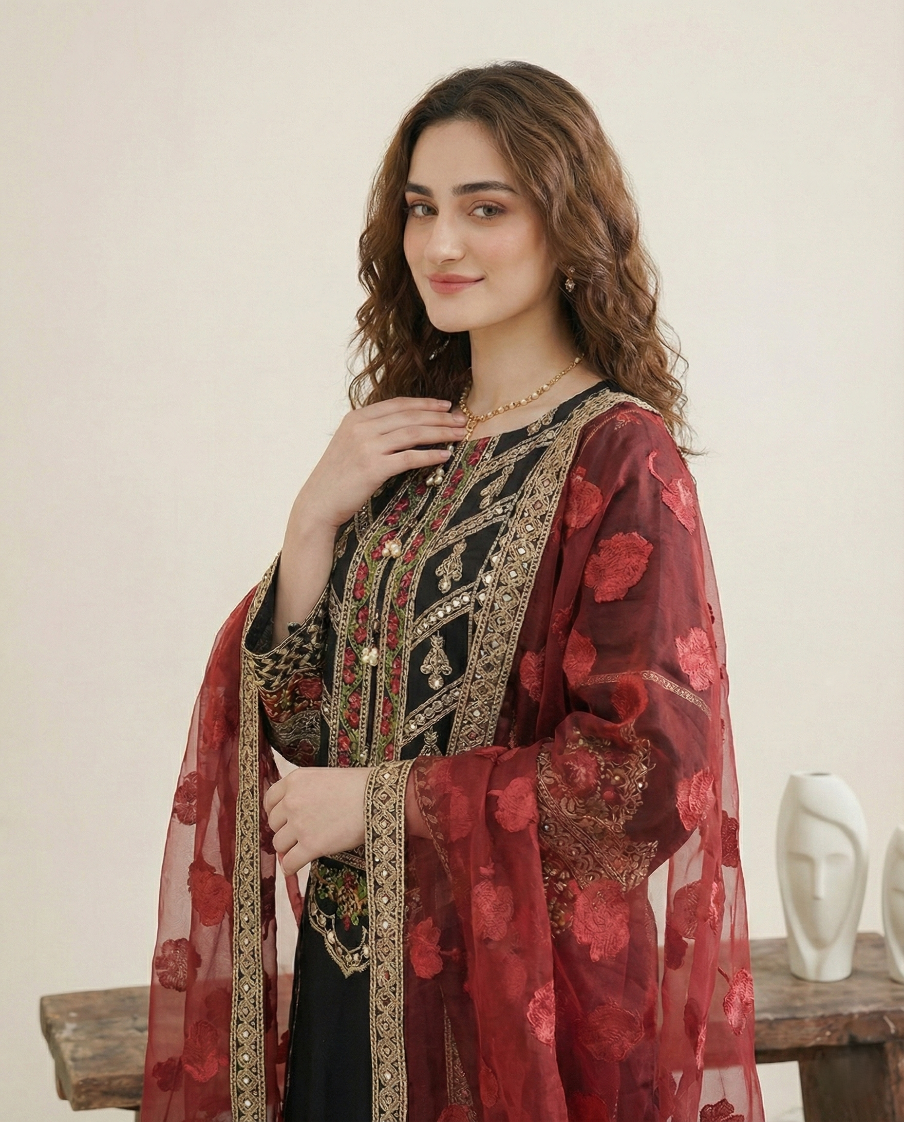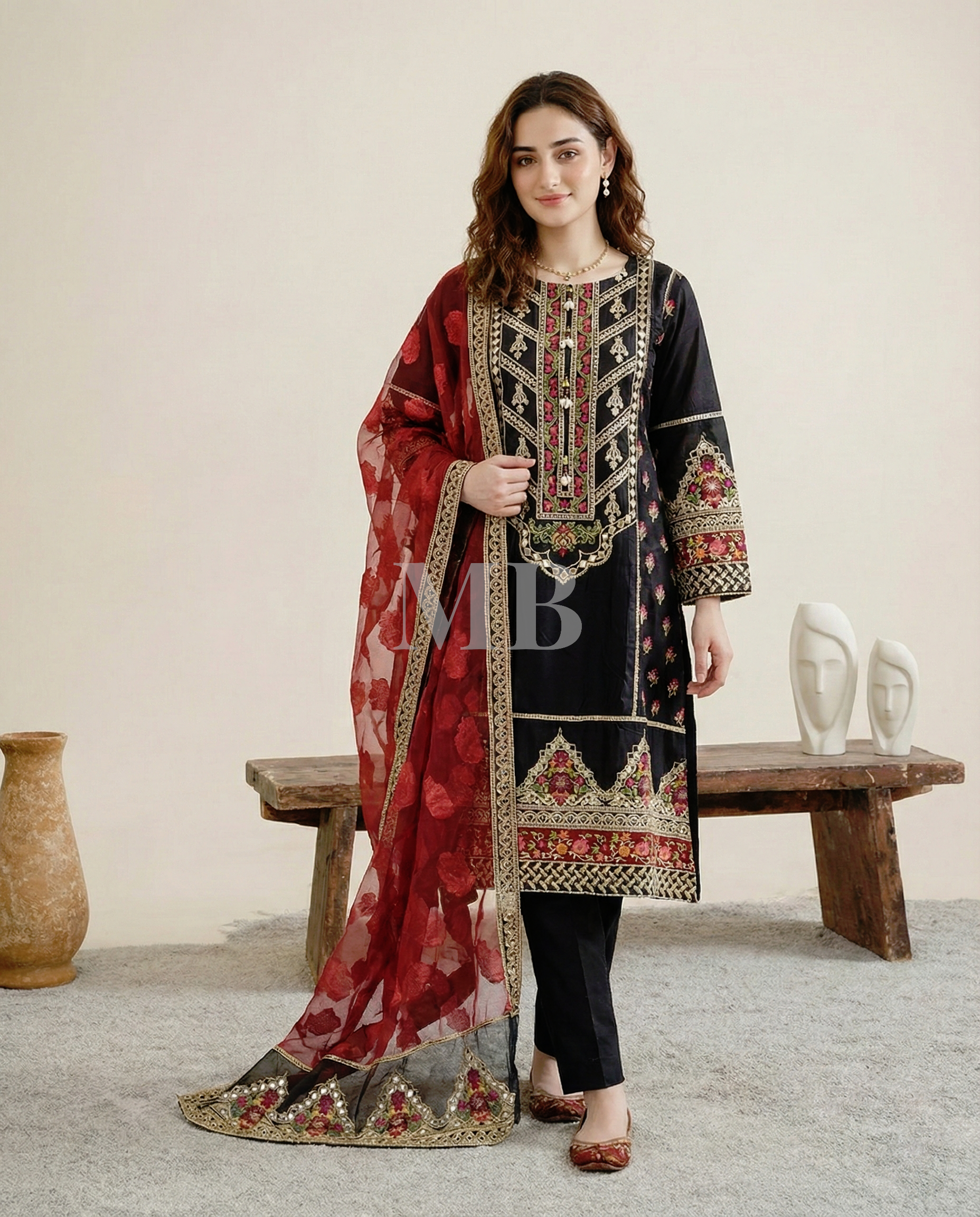 Amazing ready-to-wear quality from Muslim Boutique Fully finished dupatta included; it’s completely ready to wear right away!