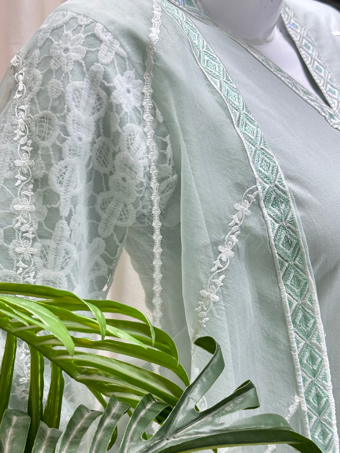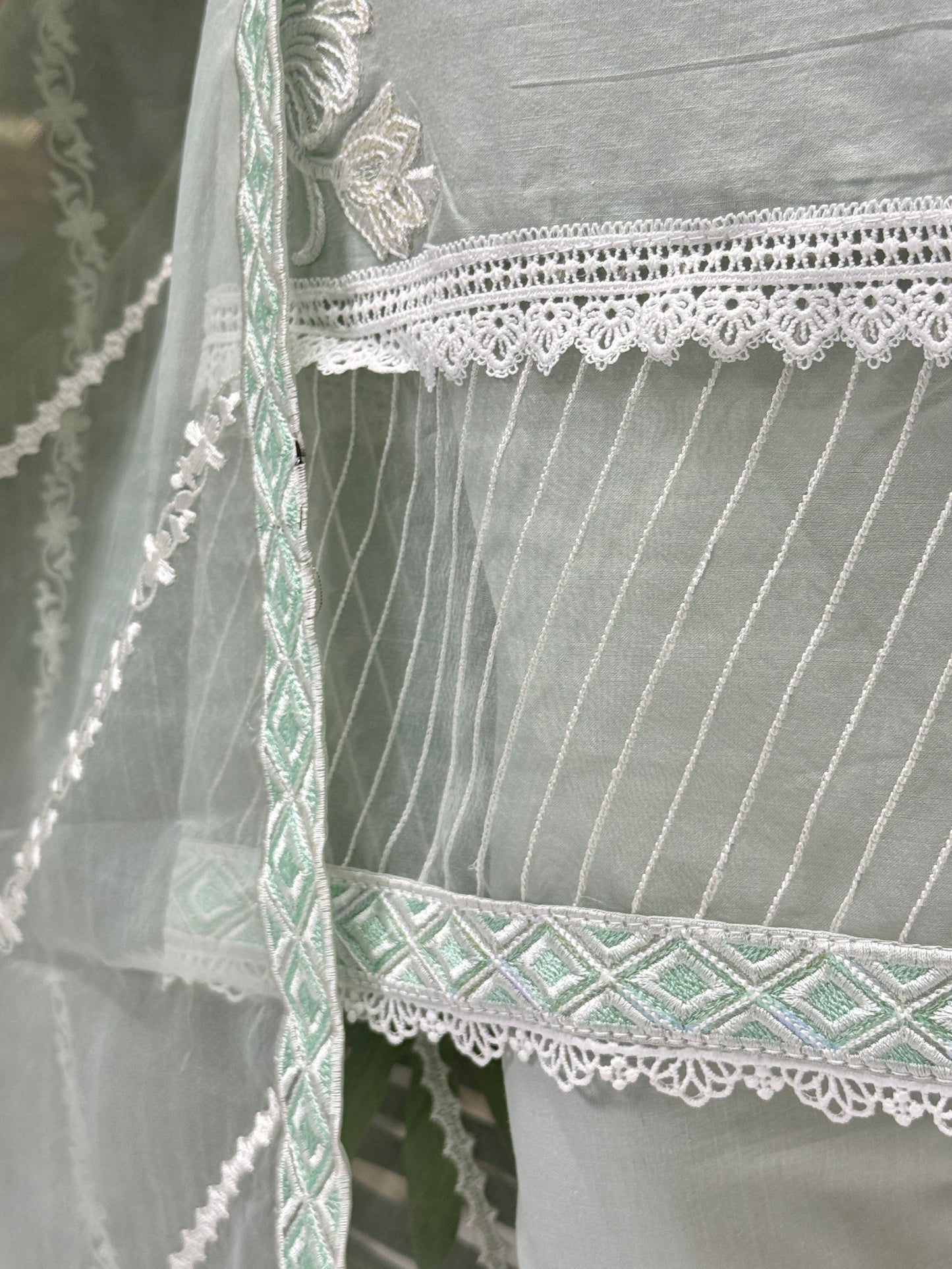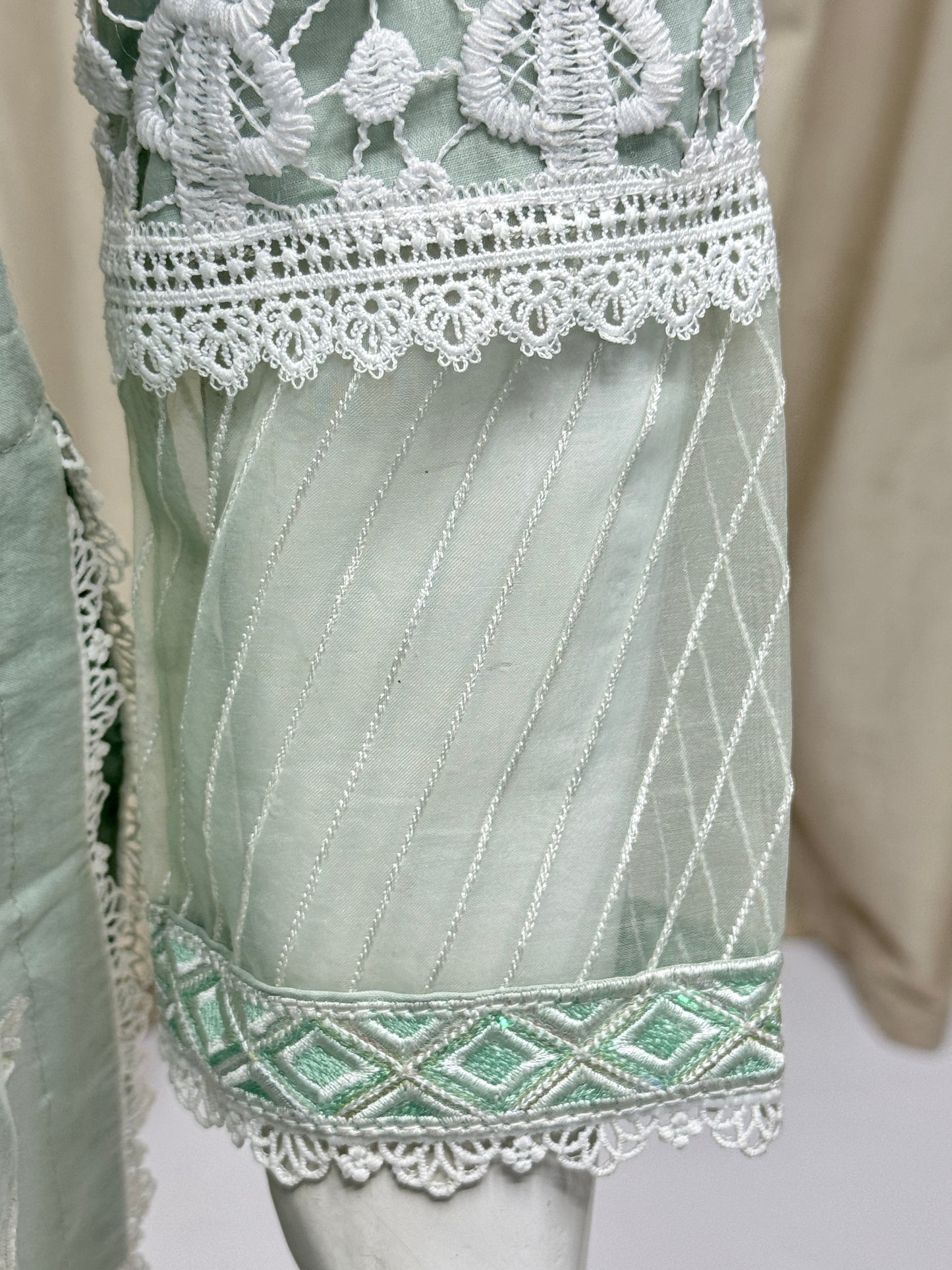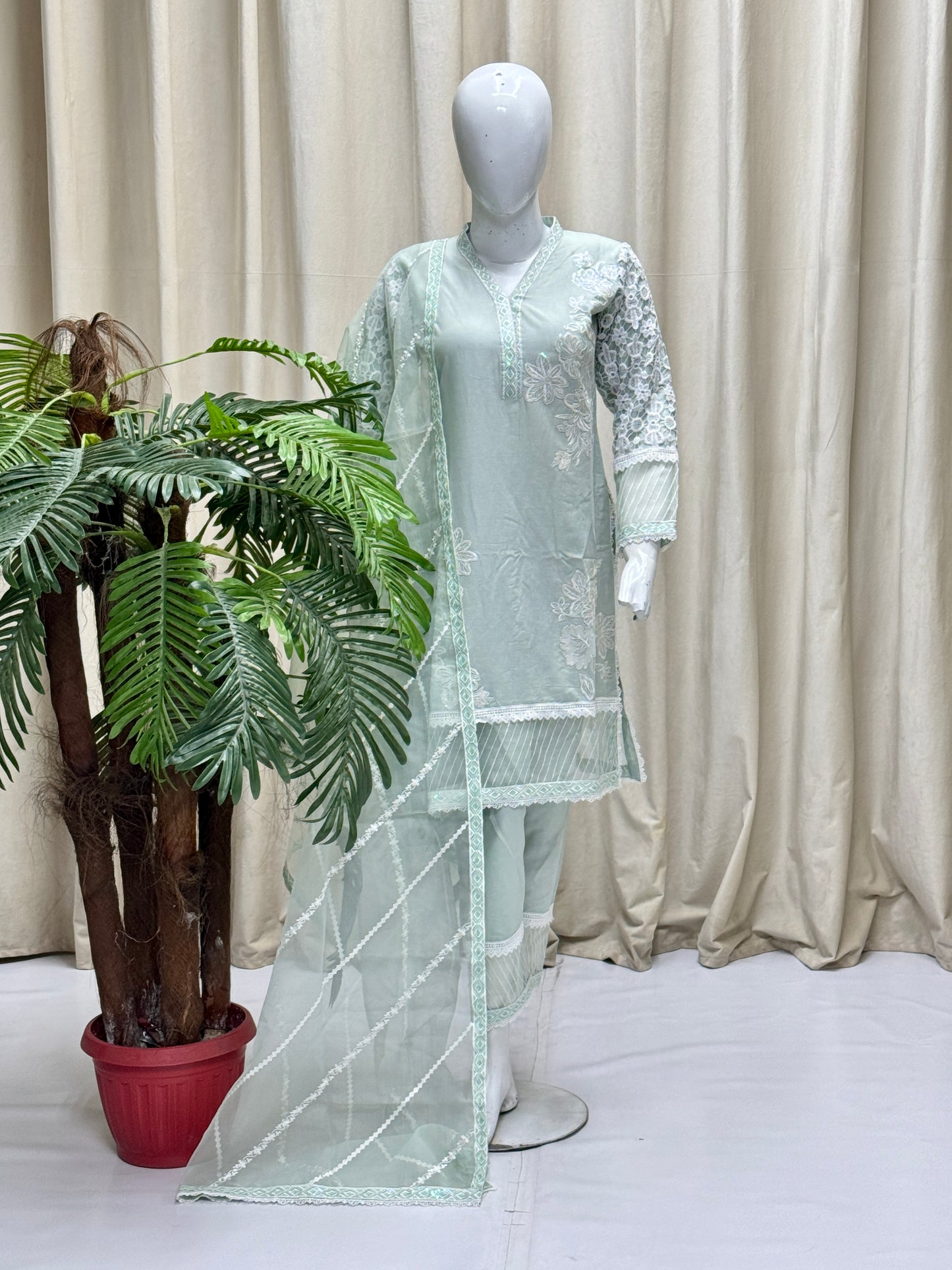 Introducing Karma 1308 C Ment By SH - the perfect addition to your wardrobe! This 3PC Ready To Wear set from the SH Brand Collection includes a stylish cutline shirt, comfortable cotton trousers, and a beautiful organza dupatta. Perfect for any occasion, the cotton fabric ensures all-day comfort while the dupatta adds an elegant touch. Upgrade your wardrobe with Karma 1308 C Ment.