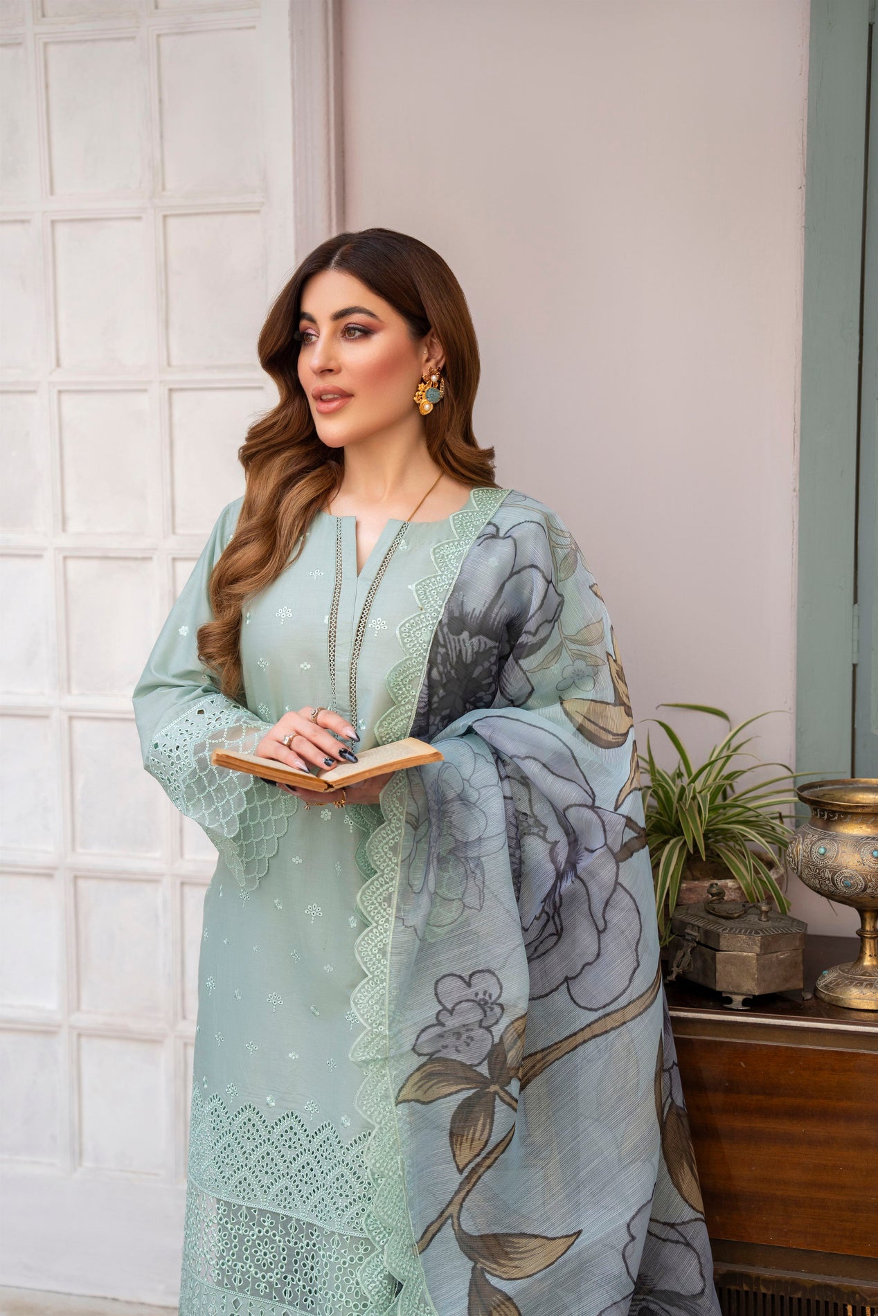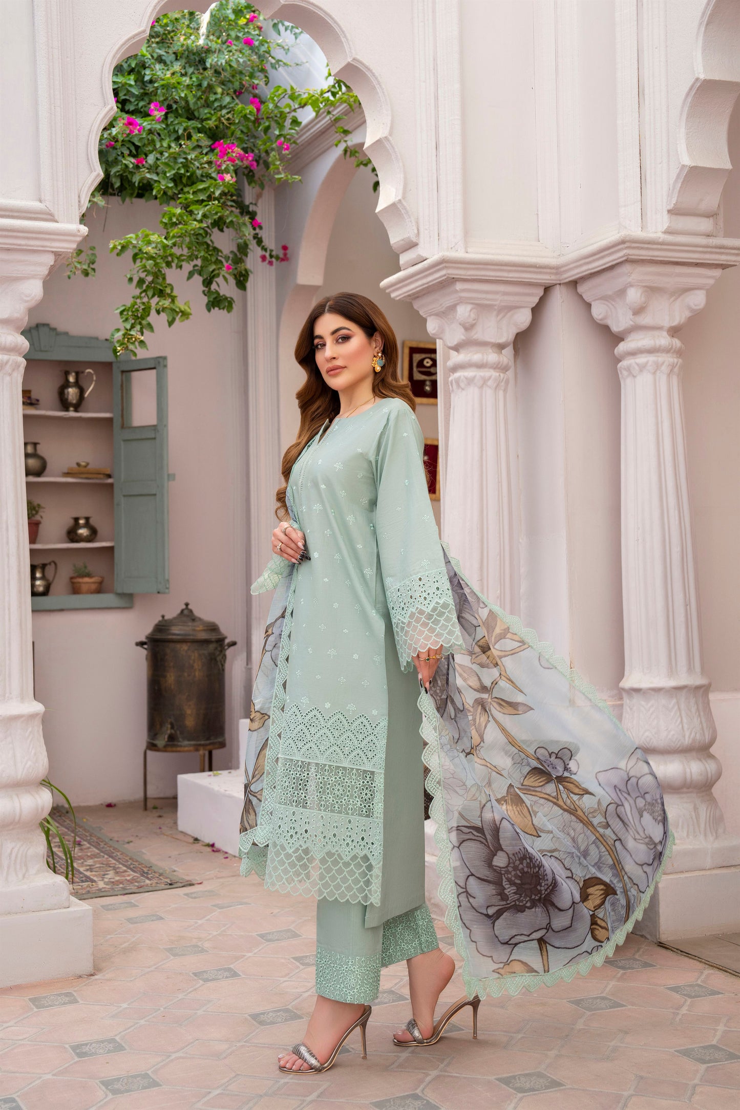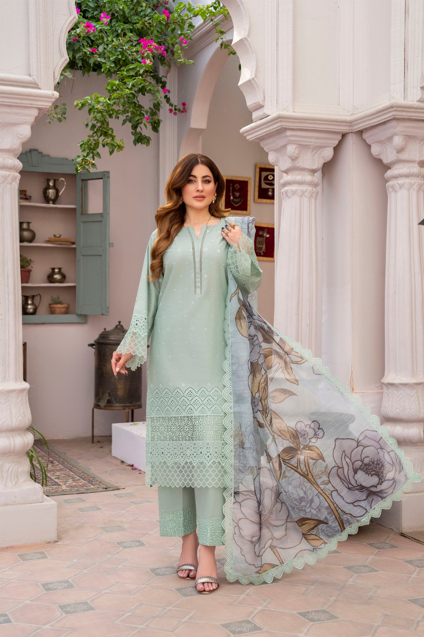 Dupatta: Khaddi Lawn Print and Embroidery