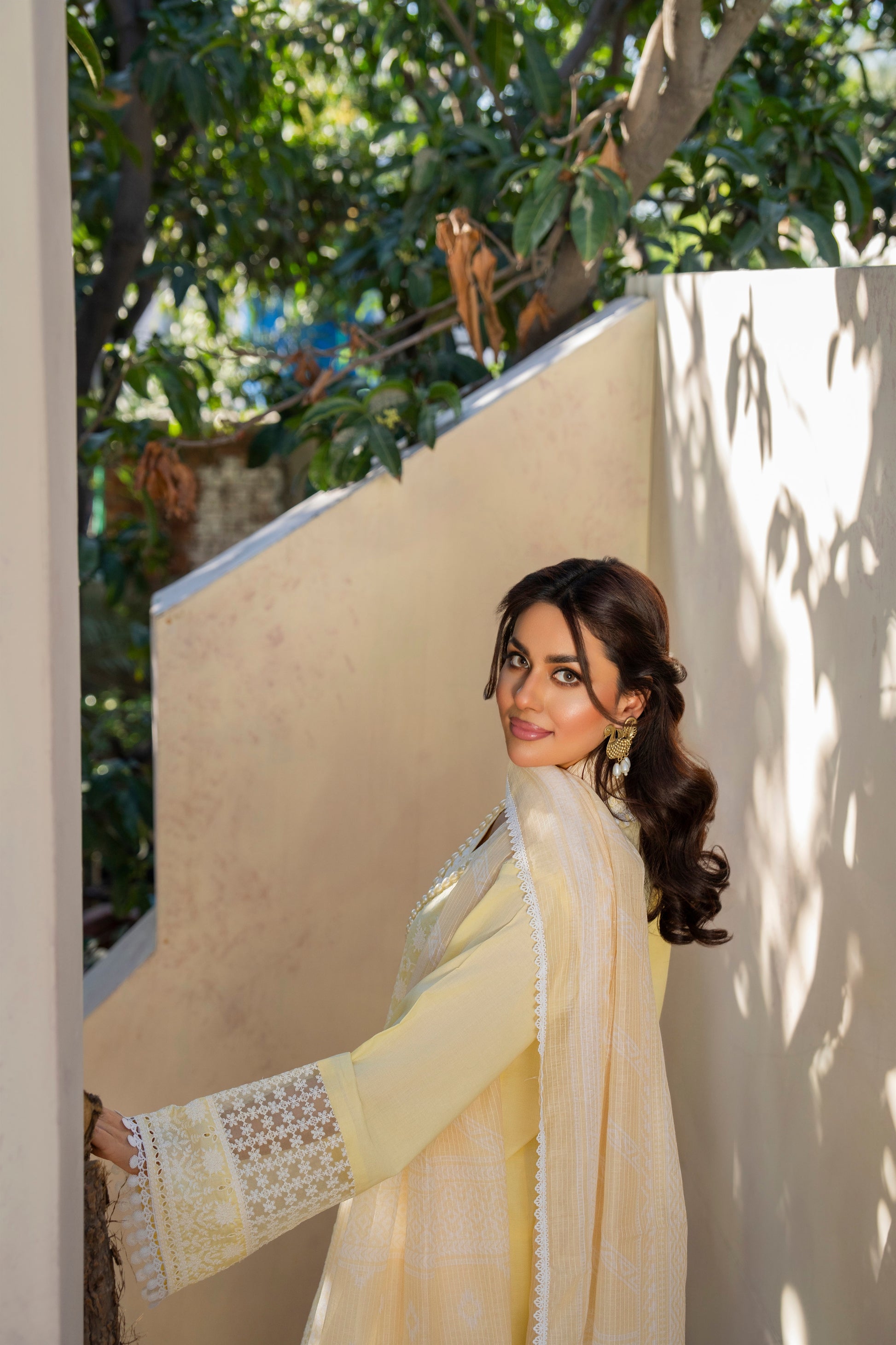 You'll love the effortless elegance of this Jafa Eid Edit by Karma. Designed for grace and comfort, this premium-quality cotton ensemble ensures breathability for all-day wear. The shirt features intricate mate thread work, complemented by delicate shuttle lace on the ghera and chaak for a refined touch. The printed dupatta adds a vibrant charm, while the cotton trousers provide a sleek and comfortable finish. Perfect for festive gatherings, cultural celebrations, and formal occasions, this outfit blends sophistication with timeless tradition.