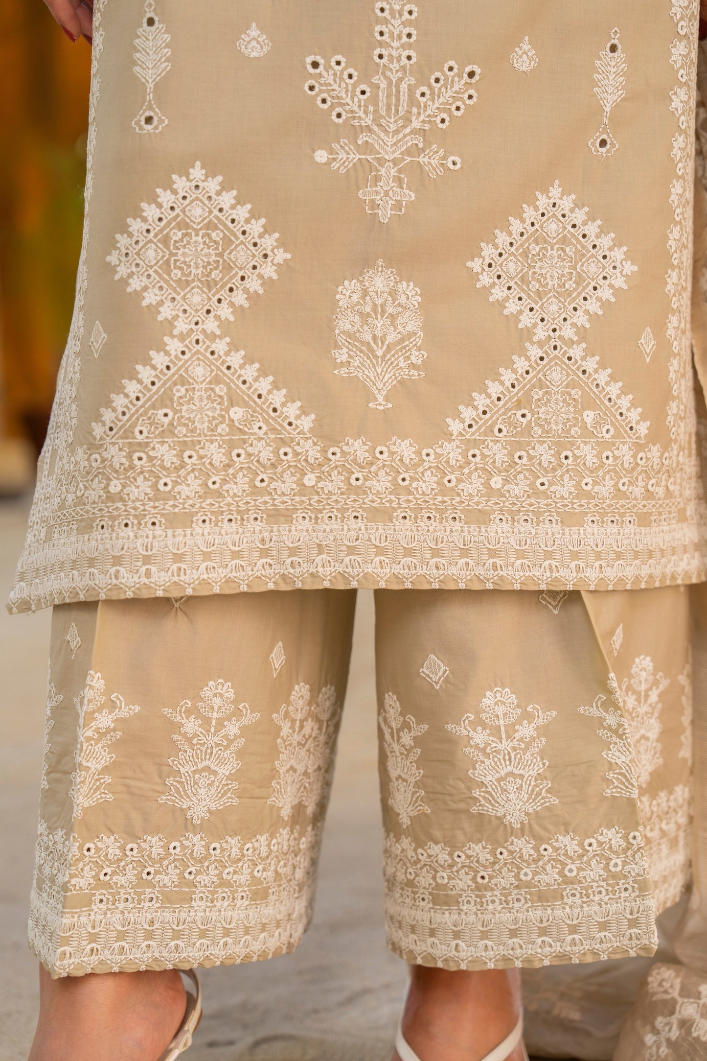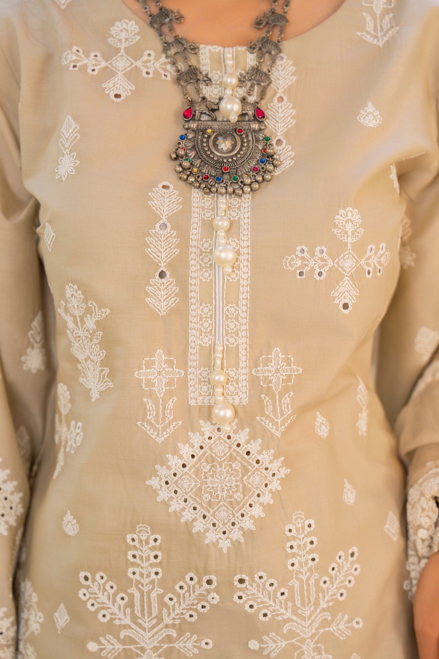 You'll love the effortless elegance of this Jafa Eid Edit by Karma. Designed for grace and comfort, this premium-quality cotton ensemble ensures breathability for all-day wear. The shirt features intricate mate thread work, complemented by delicate shuttle lace on the ghera and chaak for a refined touch. The printed dupatta adds a vibrant charm, while the cotton trousers provide a sleek and comfortable finish. Perfect for festive gatherings, cultural celebrations, and formal occasions, this outfit blends sophistication with timeless tradition.